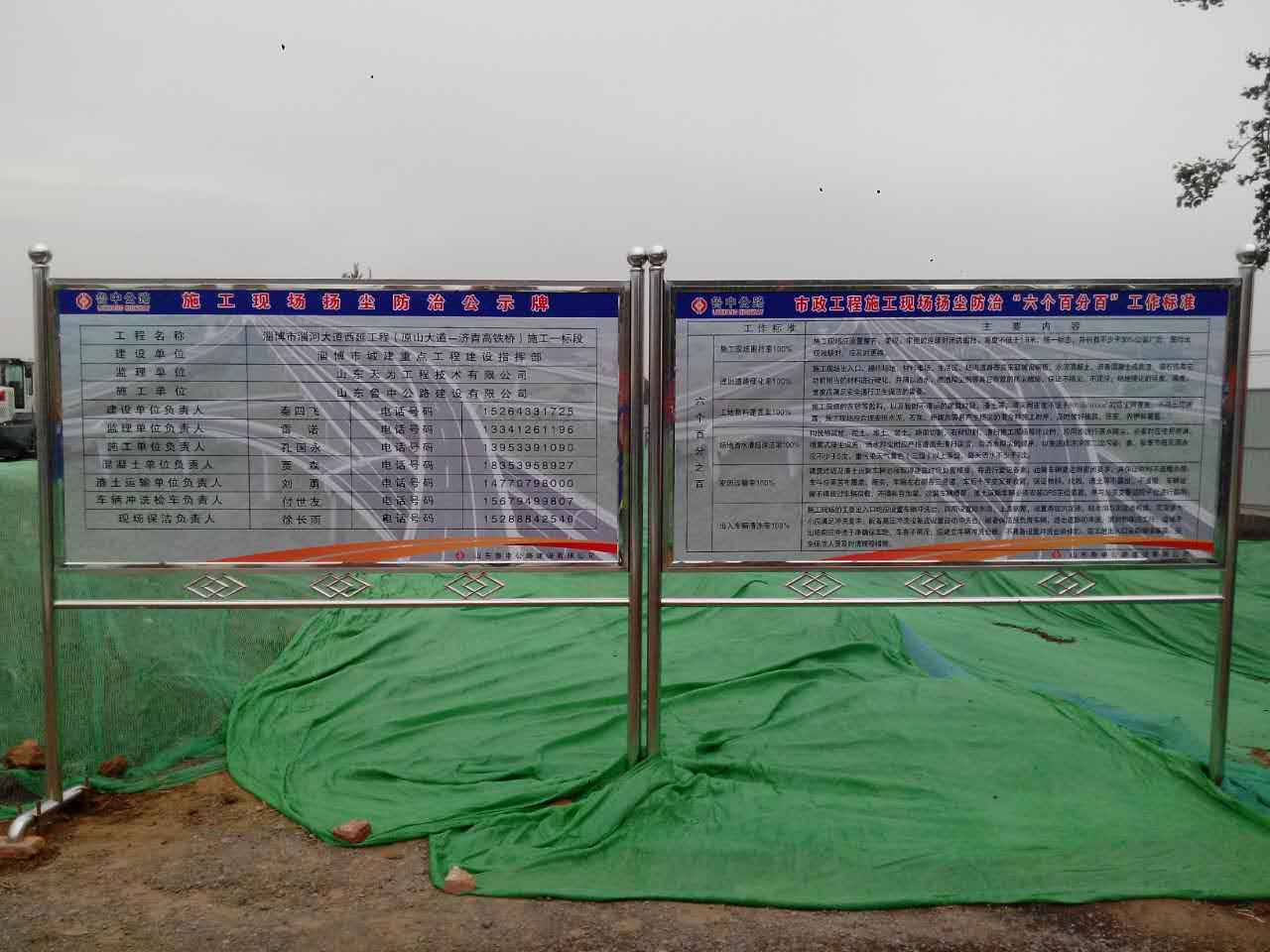 揚(yáng)塵防治公示牌和“六個(gè)百分百”工作標(biāo)準(zhǔn)