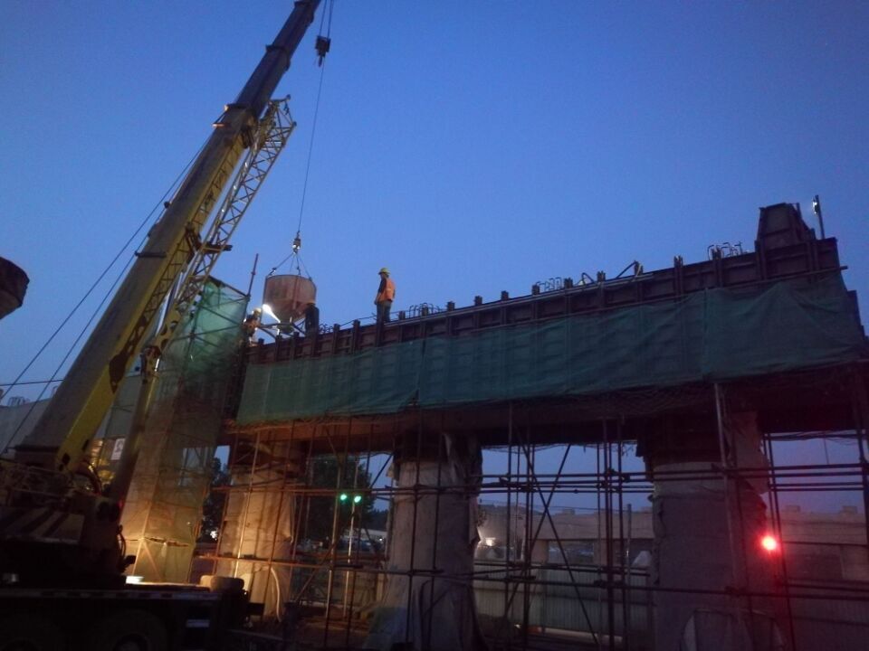 2017年5月24日凌晨,張博路分離立交開(kāi)始了首片上跨張博路40m箱梁的吊裝施工,這是S102工程建設(shè)中具有里程碑意義的一夜。至此,張博路分離立交的建設(shè)進(jìn)入了新的快車道。負(fù)責(zé)張博路分離立交施工的是S102項(xiàng)目部橋隧分部,現(xiàn)場(chǎng)負(fù)責(zé)人周勇勇。這個(gè)團(tuán)隊(duì)?wèi){借其團(tuán)結(jié)、聽(tīng)指揮的上行下效,贏得了項(xiàng)目部所有人員的贊賞。S294張博路是淄博市境內(nèi)的主要交通干線,車流量大,車速快,S102上跨張博路位置又處在淄川區(qū)雙楊鎮(zhèn)的重要路口,附近陶瓷廠、磨料場(chǎng)的生產(chǎn)規(guī)模大,平時(shí)可謂車水馬龍;跨鐵路施工歷來(lái)是讓人頭疼的難題,交涉、辦手續(xù)、再交涉、再辦手續(xù),可任你如何的發(fā)急發(fā)狠,一道歷史久遠(yuǎn)的張博鐵路就這樣靜靜的臥在我們面前。困難,不言而喻,為如期保質(zhì)、安全的完成工程施工,橋隧分部人員做了大量的現(xiàn)場(chǎng)調(diào)查、方案論證,交通組織設(shè)計(jì)再三修改,施工人員準(zhǔn)時(shí)在上、下班交通高峰期間指揮交通、警示行人。提起橋隧分部,項(xiàng)目經(jīng)理翟峰總是贊不絕口,“很久沒(méi)有看到這樣的團(tuán)隊(duì)了,負(fù)責(zé)人帶頭干,一家人跟著沖,有活力,有擔(dān)當(dāng)”,這是大家都有目共睹的,春節(jié)過(guò)后,橋隧分部每周的施工進(jìn)度全部都能按照計(jì)劃完成,計(jì)劃落實(shí)情況是項(xiàng)目部下屬各個(gè)單位中做的最好的,往返工地,也經(jīng)常能看到汗流浹背、衣衫濕透的周勇勇在指揮著橋下交通。5月20日、21日晚,為保證首片上跨張博路40m箱梁的順利進(jìn)行,橋隧分部連續(xù)兩個(gè)晚上進(jìn)行了張博路交通試封閉工作。凌晨時(shí)分,來(lái)往大車依然絡(luò)繹不絕,且絲毫沒(méi)有減速的意圖,現(xiàn)場(chǎng)負(fù)責(zé)人周勇勇用電話向橋下的兄弟們發(fā)出一份份清晰、準(zhǔn)確地指令,橋下的工作人員在接收到指令后隨時(shí)對(duì)交通的交通進(jìn)行疏導(dǎo),這是一群虎狼之師,敢打敢拼,從不言敗。