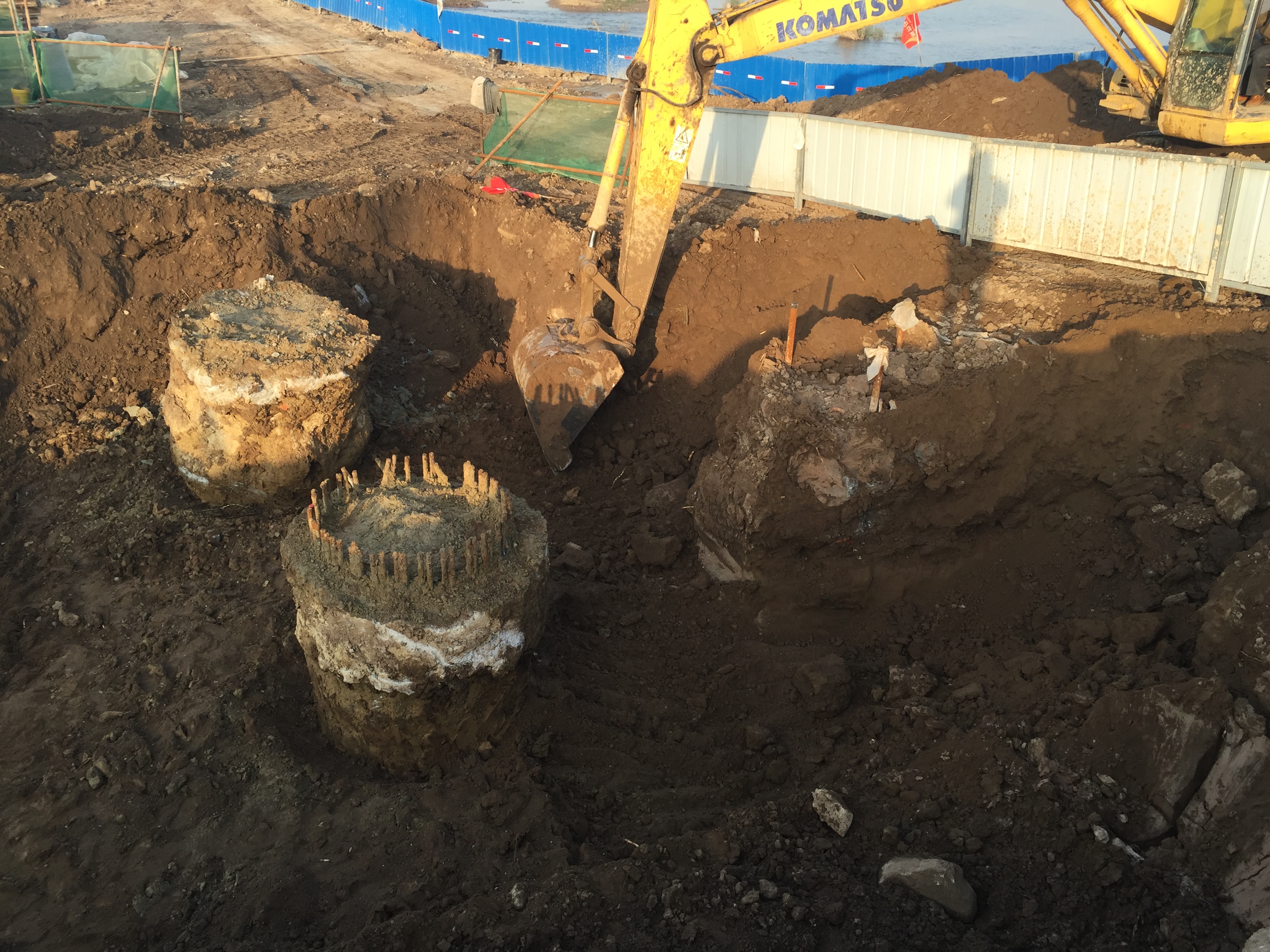 2016年11月19日,樁頭破除施工現(xiàn)場。