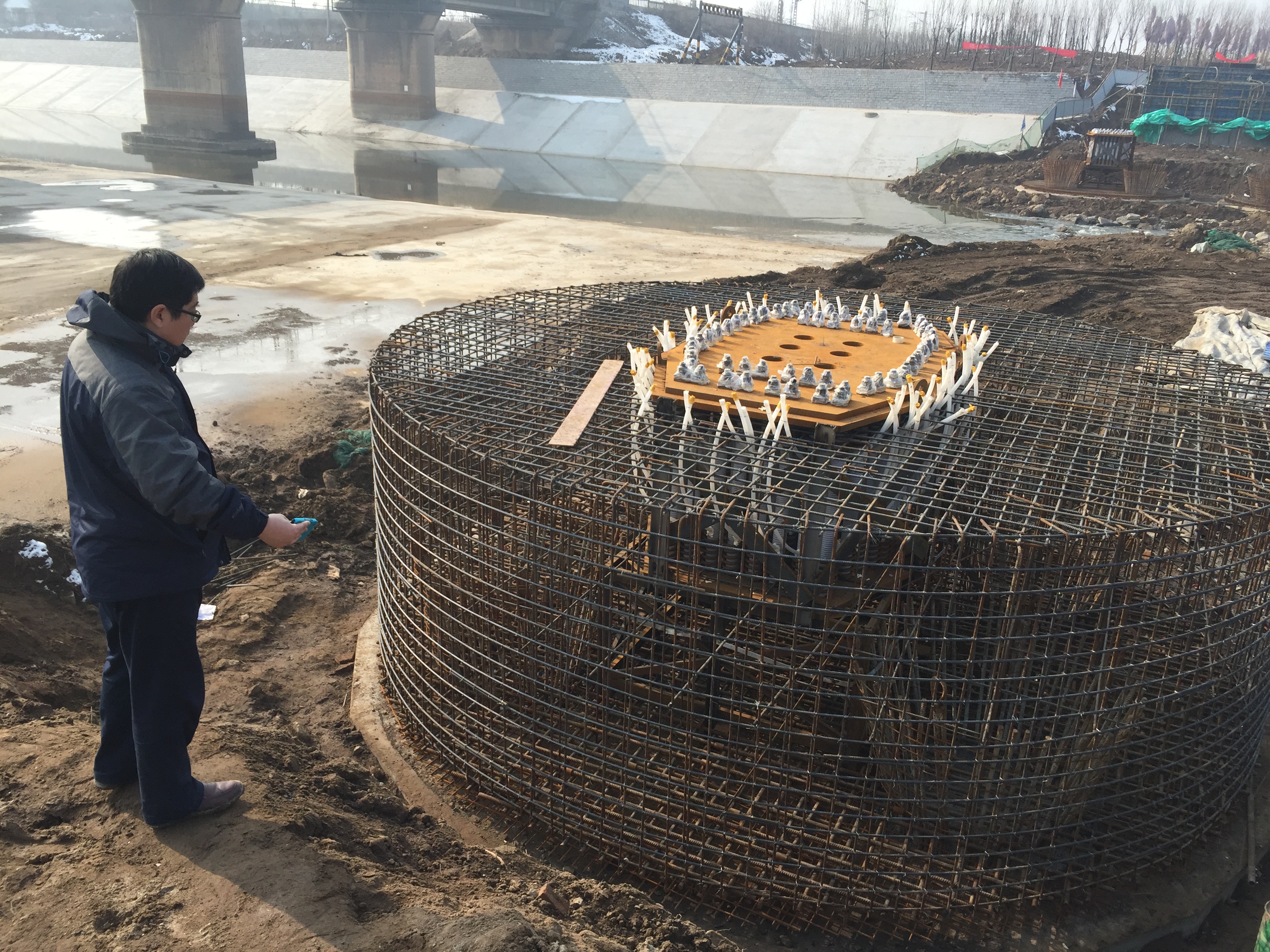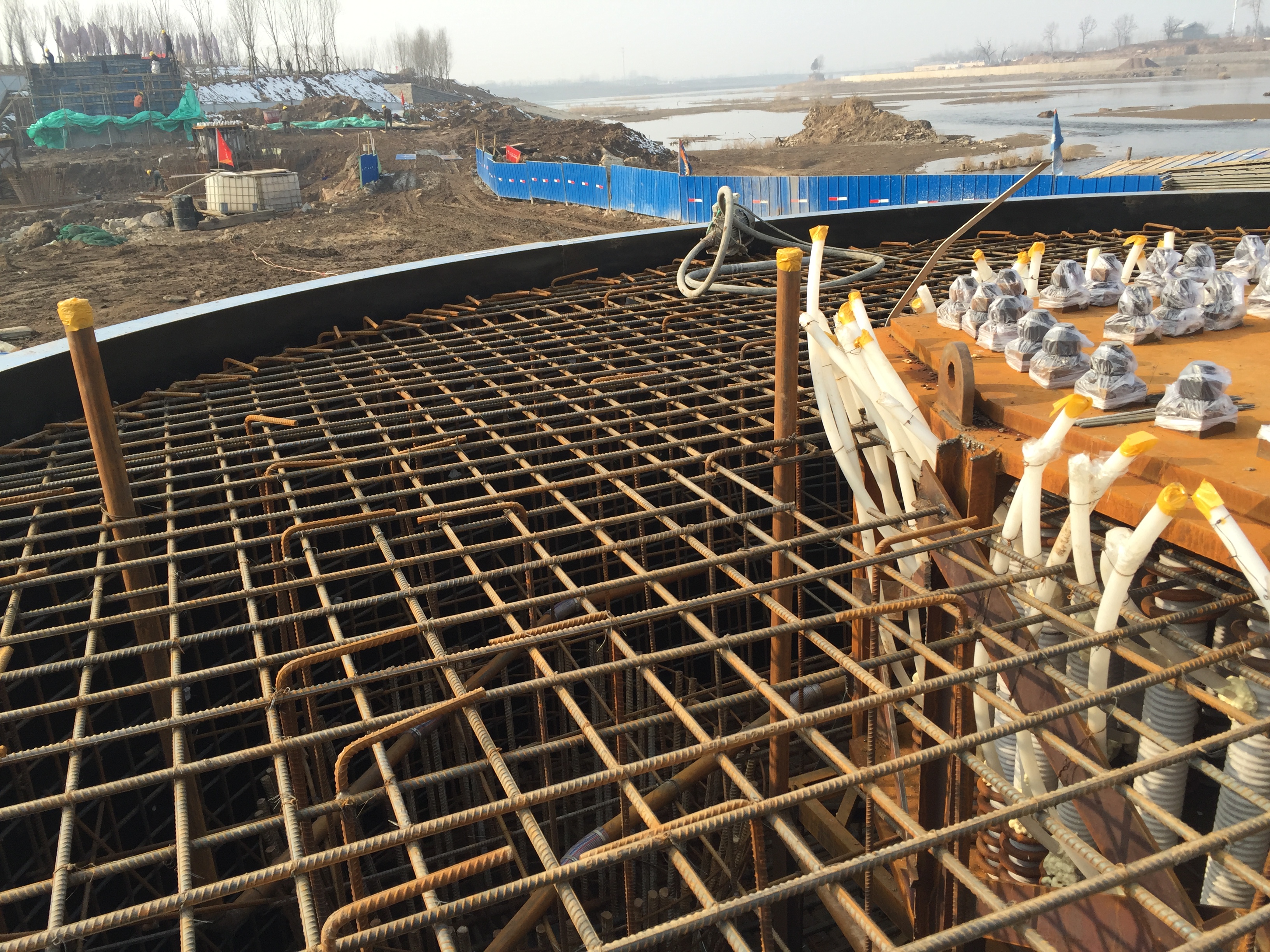 2016年12月31日,施工過程中為防止圓承臺(tái)混凝土水化熱過大而影響質(zhì)量,我們增加了冷凝管。