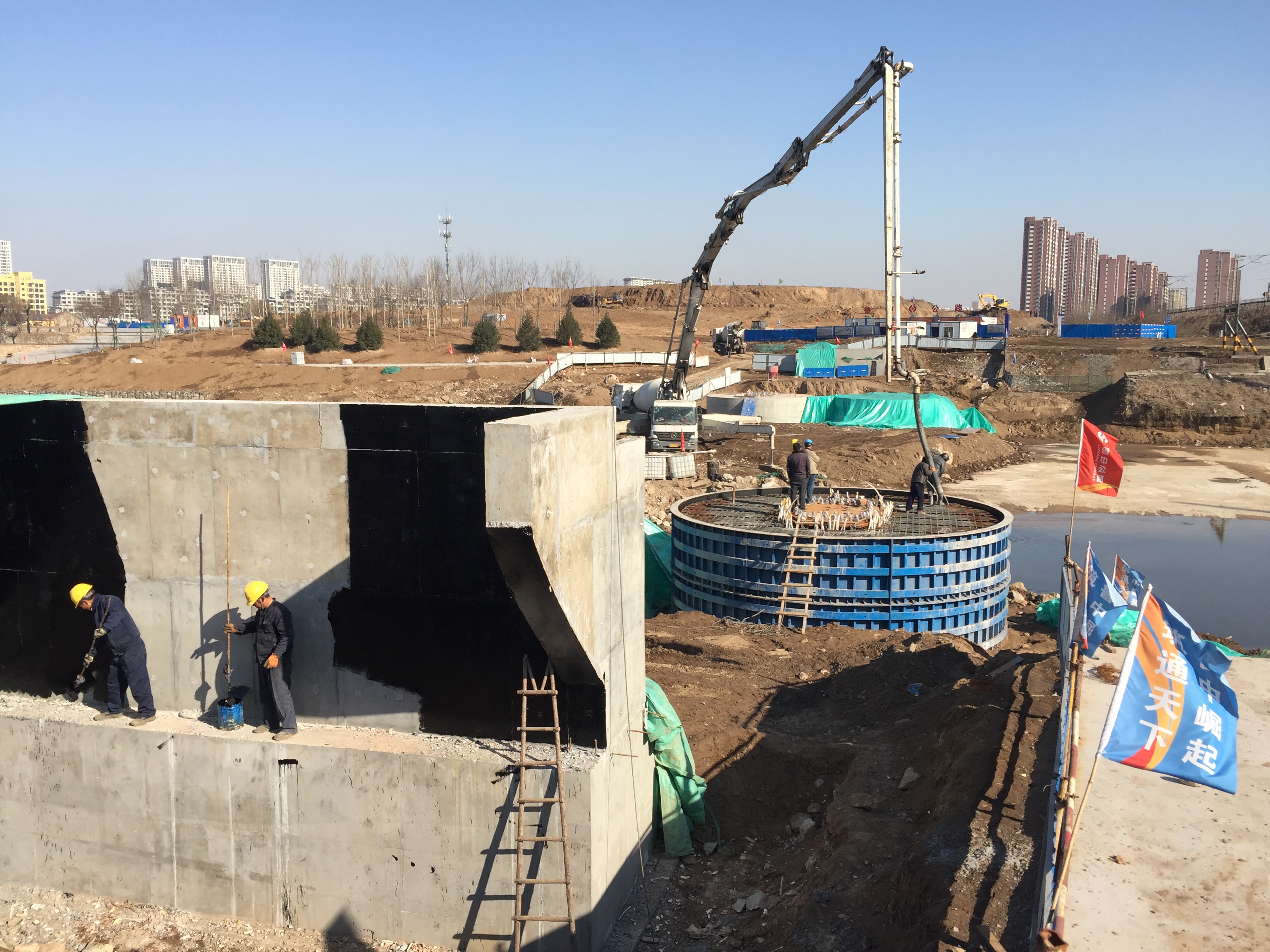 2017年1月2日,圓承臺(tái)混凝土養(yǎng)護(hù)。