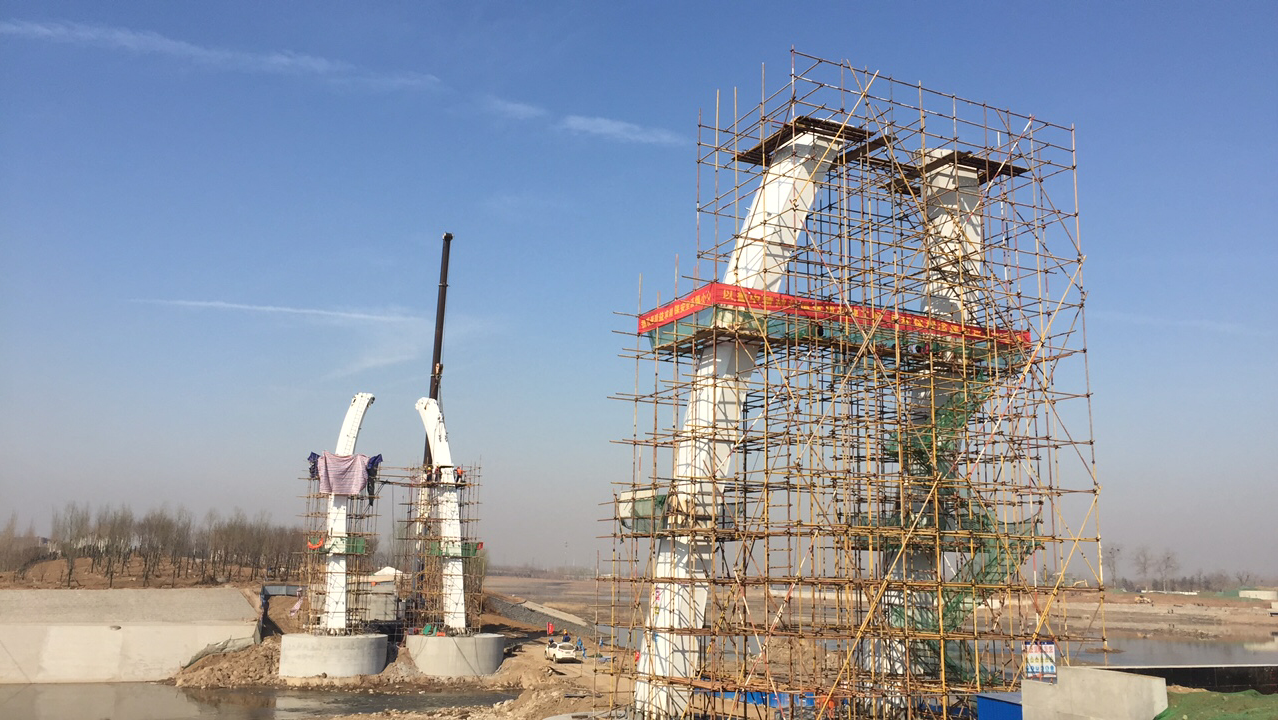 2016年9月7日,魯中公路中標(biāo)淄博市孝婦河黃土崖段綜合整治項(xiàng)目園區(qū)橋梁工程一標(biāo)段,主要施工范圍為鐵路北孝婦河橋及其配套設(shè)施。鐵路北孝婦河橋位于膠濟(jì)鐵路北側(cè)孝婦河上,結(jié)構(gòu)形式為懸索橋。主橋?yàn)榭臻g纜面懸索橋,長92m,跨徑為60米,橋面寬度8m,人行道凈寬7.3m。