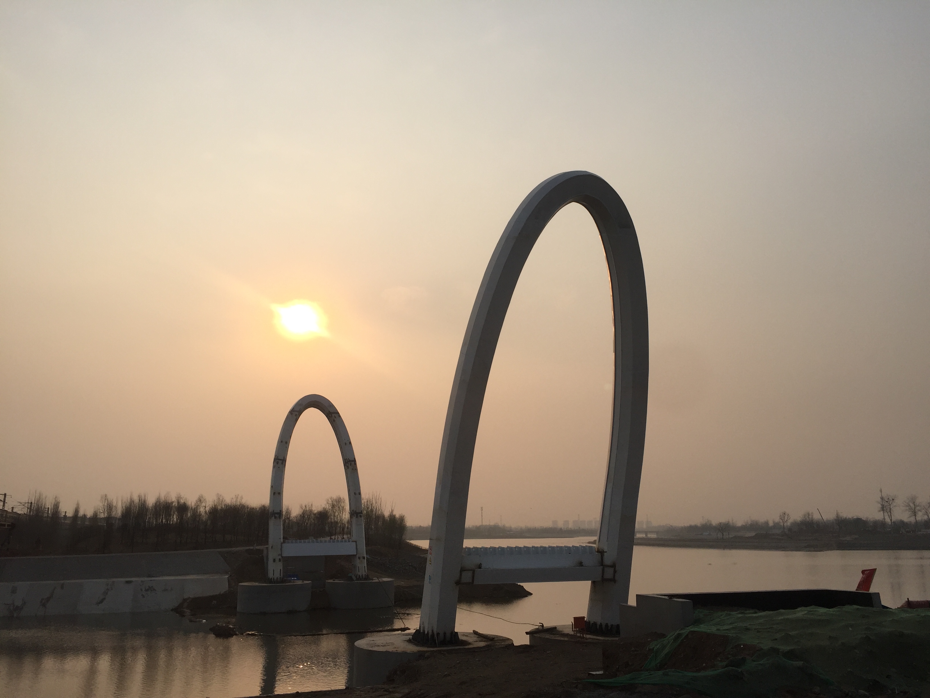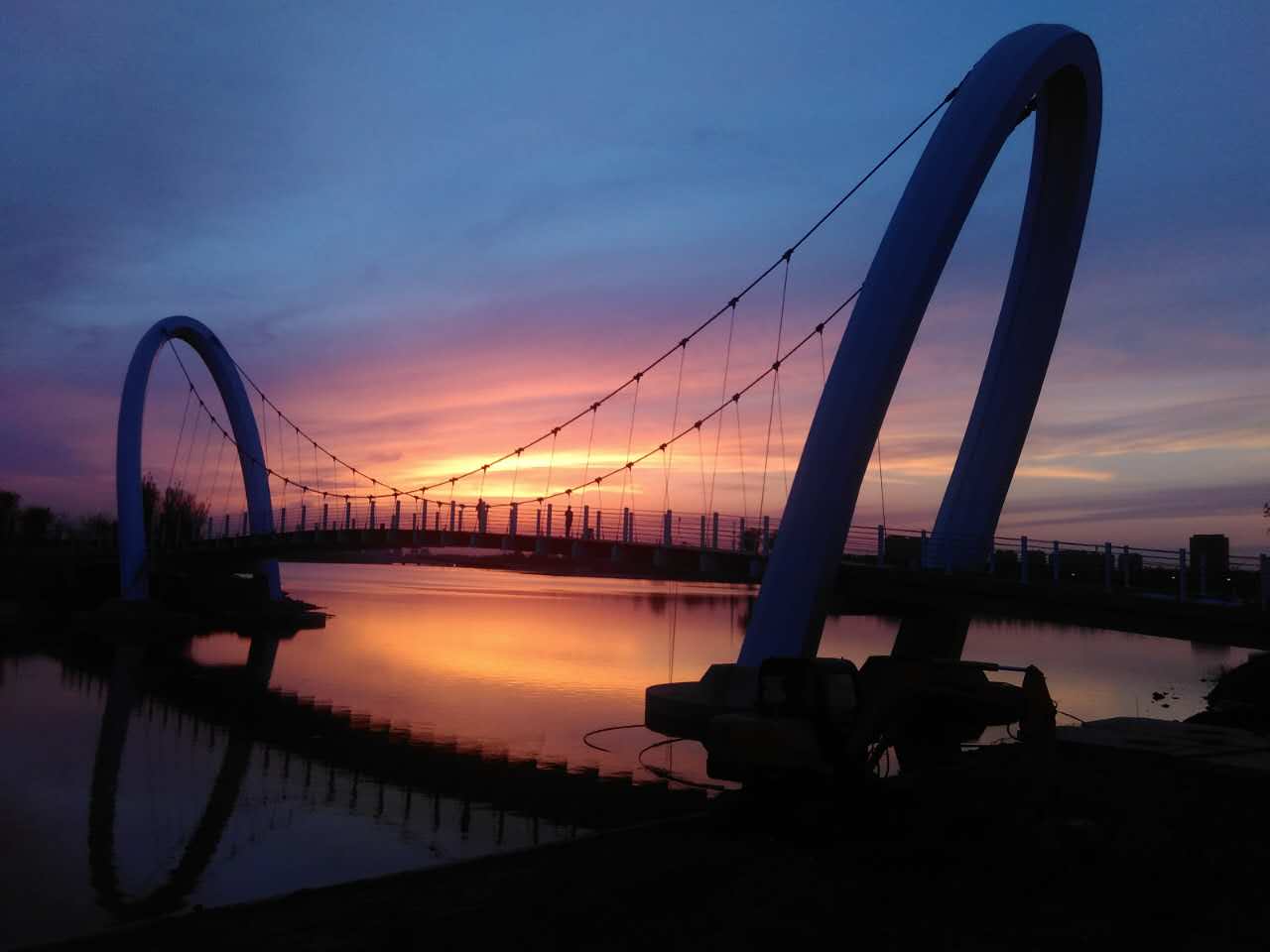 昨天的烈日下,汗水浸濕的衣背清晰可見,一雙雙有力的臂膀在揮舞、一顆顆執(zhí)著的心在跳動(dòng),火熱的場面涌現(xiàn)著無窮的力量。今天桀驁的懸索橋已成為孝婦河濕地公園獨(dú)特的景觀,絡(luò)繹不絕的游人,爭相合影留念,而我們卻輕揮衣袖,奔赴新的征程。