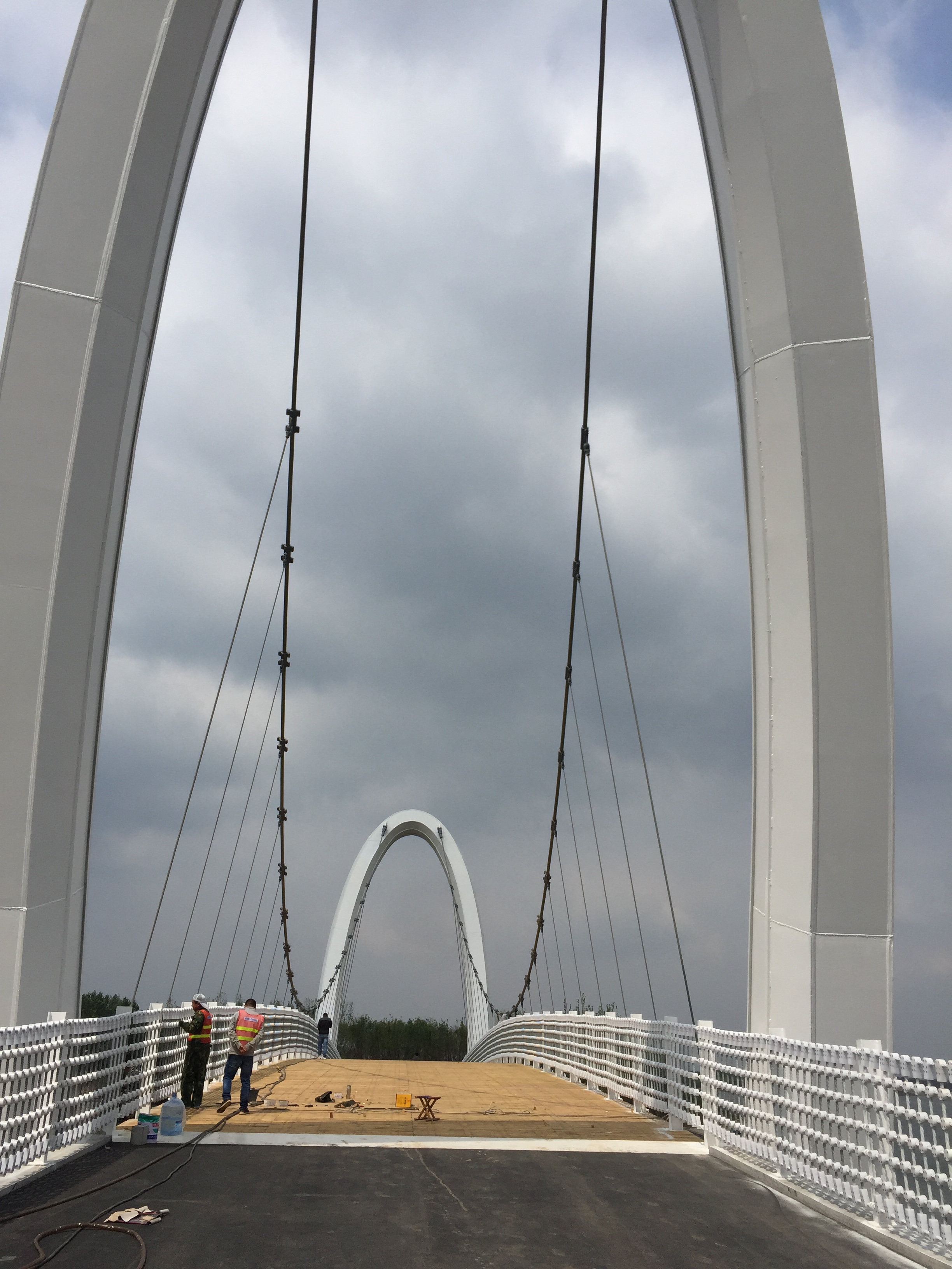 2017年5月1日,懸索橋主塔面漆涂裝。