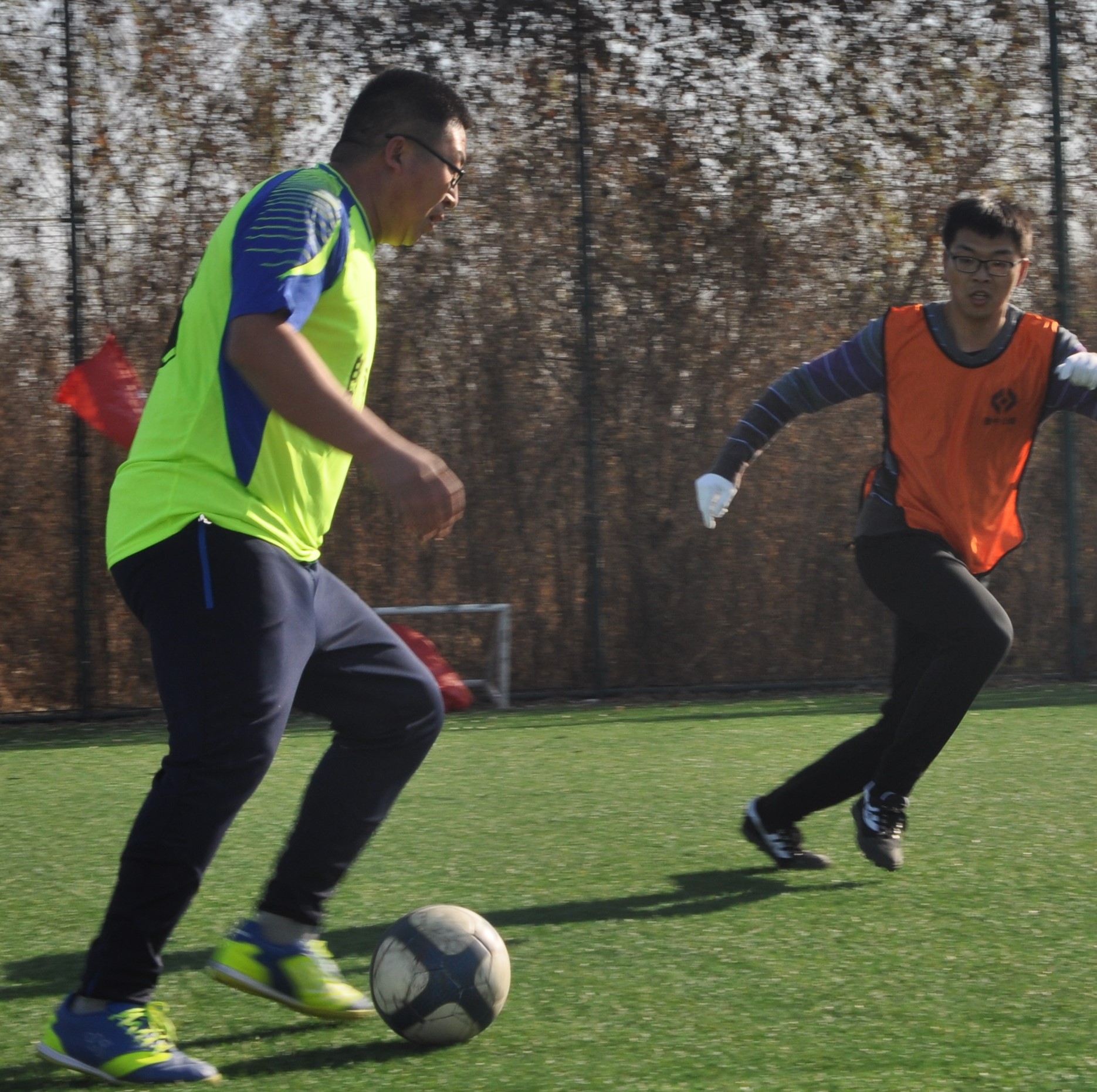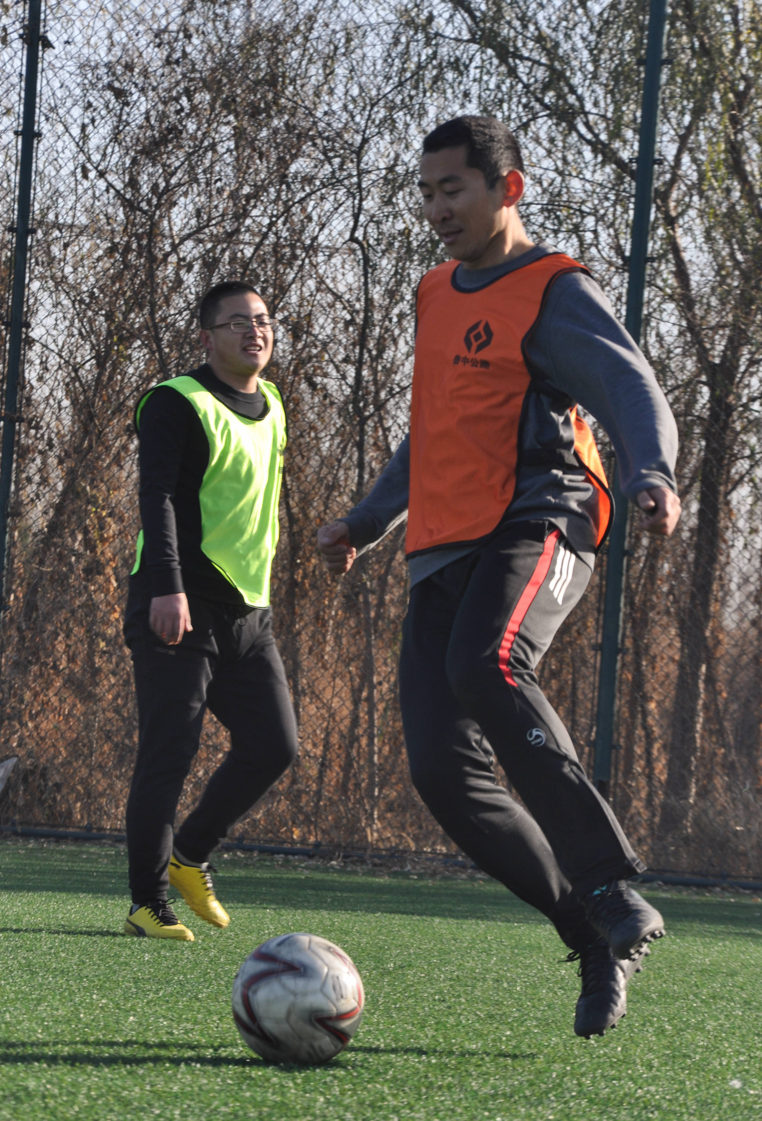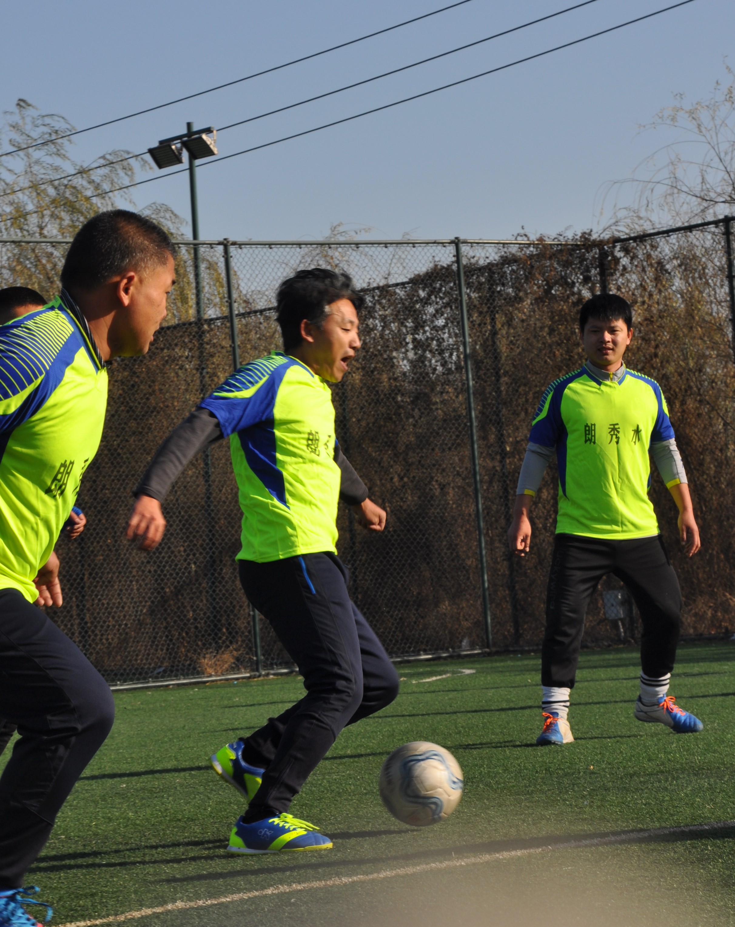 賽場上,隊員們激烈拼搶,盡情發(fā)揮球技,搶斷、過人、射門、撲救……精彩場面一個接一個,大家你追我趕,奮力馳騁。冬日的暖陽灑滿整個綠茵場,賽場上的人們熱情激昂,場下的觀眾也是心情激蕩。賽場周圍被染了金黃的楊柳樹,也仿佛重新煥發(fā)了生機,隨著風的律動,左右搖擺,歡呼雀躍。
