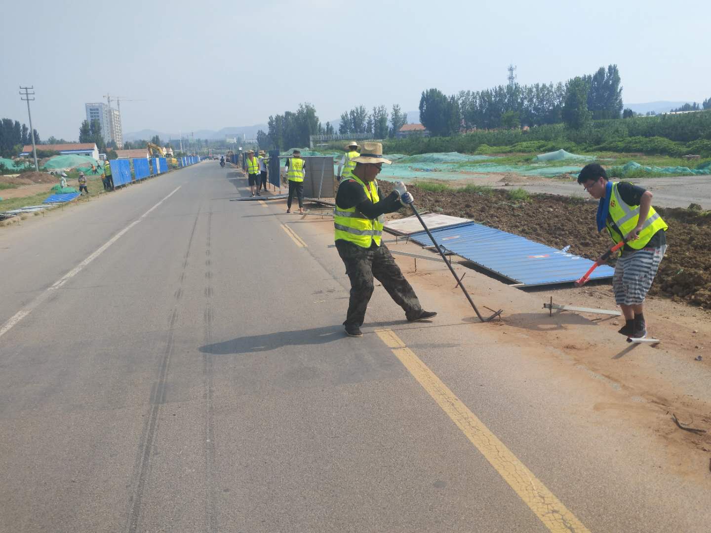 隨著施工進(jìn)度的不斷推進(jìn)以及上級點評日期的接近,人民路項目部制定了詳細(xì)的工作計劃,將每一項工作任務(wù)落實責(zé)任到位。項目部全體人員包括內(nèi)勤人員實施“全體總動員”行動,要求大家齊上陣,在原先已經(jīng)做好各項工作的基礎(chǔ)上,進(jìn)一步對全線8.6公里的圍擋進(jìn)行修整維護(hù),并拆除、更換、張貼宣傳畫,對危險部位水馬擺放、全線垃圾清理、裸土及路基綠化帶全面覆蓋、圍擋清理等各項工作進(jìn)行排查和修整,在規(guī)定時間內(nèi)全部準(zhǔn)備到位,確保人民路項目各項工作合格達(dá)標(biāo)。