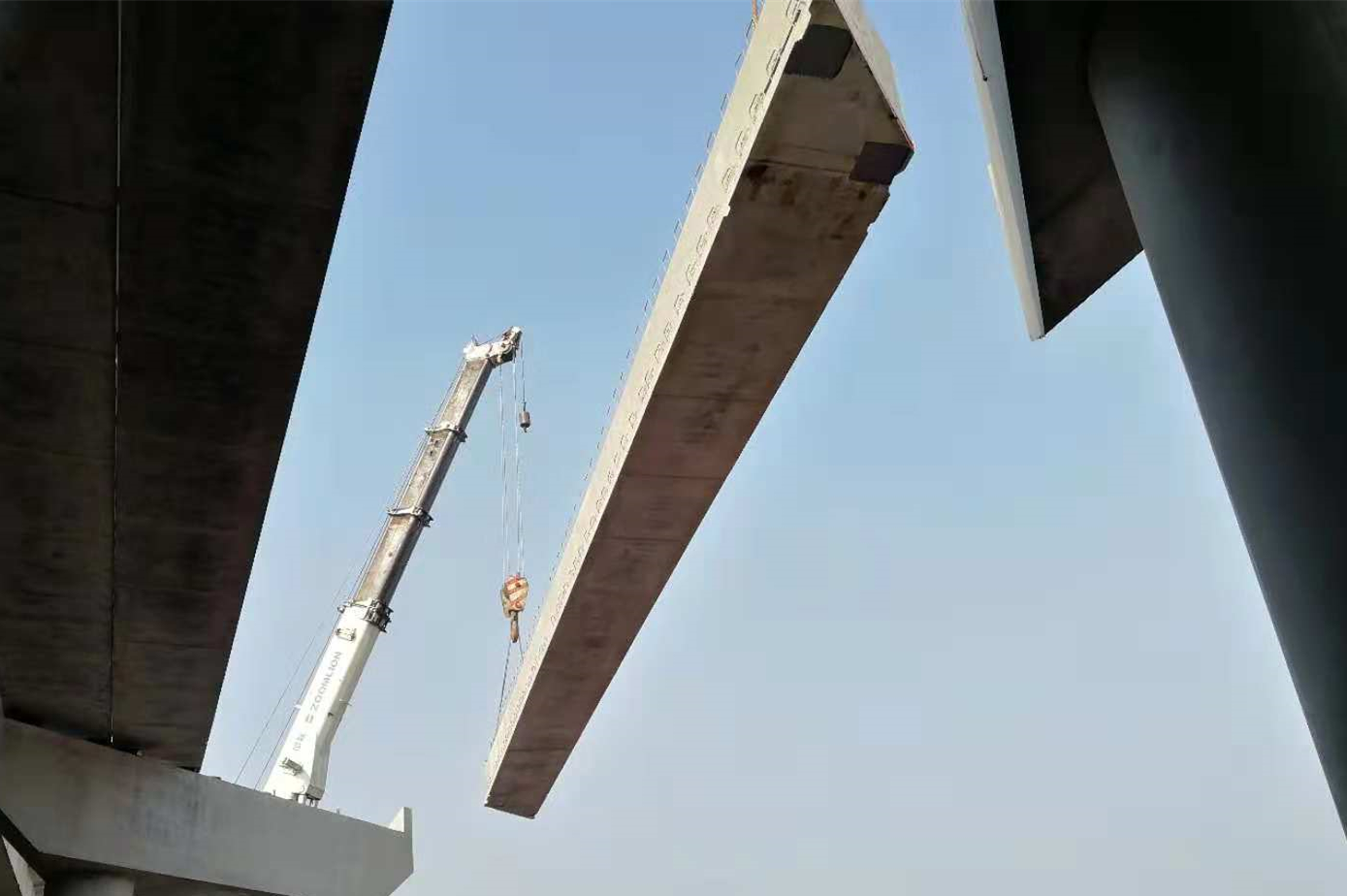 京滬高速公路萊蕪至臨沂段改擴(kuò)建工程臨沂段全線首片空心板梁成功架設(shè)