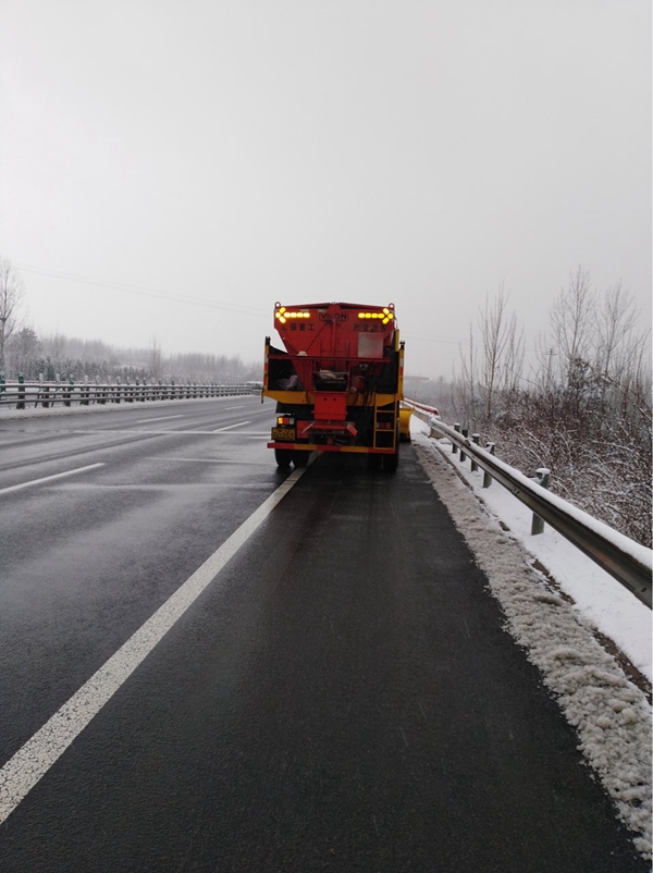 本月初,我部人員在接到養(yǎng)護中心除雪防滑的通知后,第一時間準備就緒,除雪車順利上路撒布融雪劑。作業(yè)期間三輛除雪車從各個路段同時噴灑,確保除雪工作不間斷進行。并每輛除雪車后安排一輛應急保障車輛,保障施工安全和施工質量。除正常撒布融雪劑外,我部還安排除雪車將道路內側車道、橋梁、背陰路段積雪進行鏟除。歷時施工兩日,除雪應急工作已順利完成,道路積雪融化,車輛正常行駛。