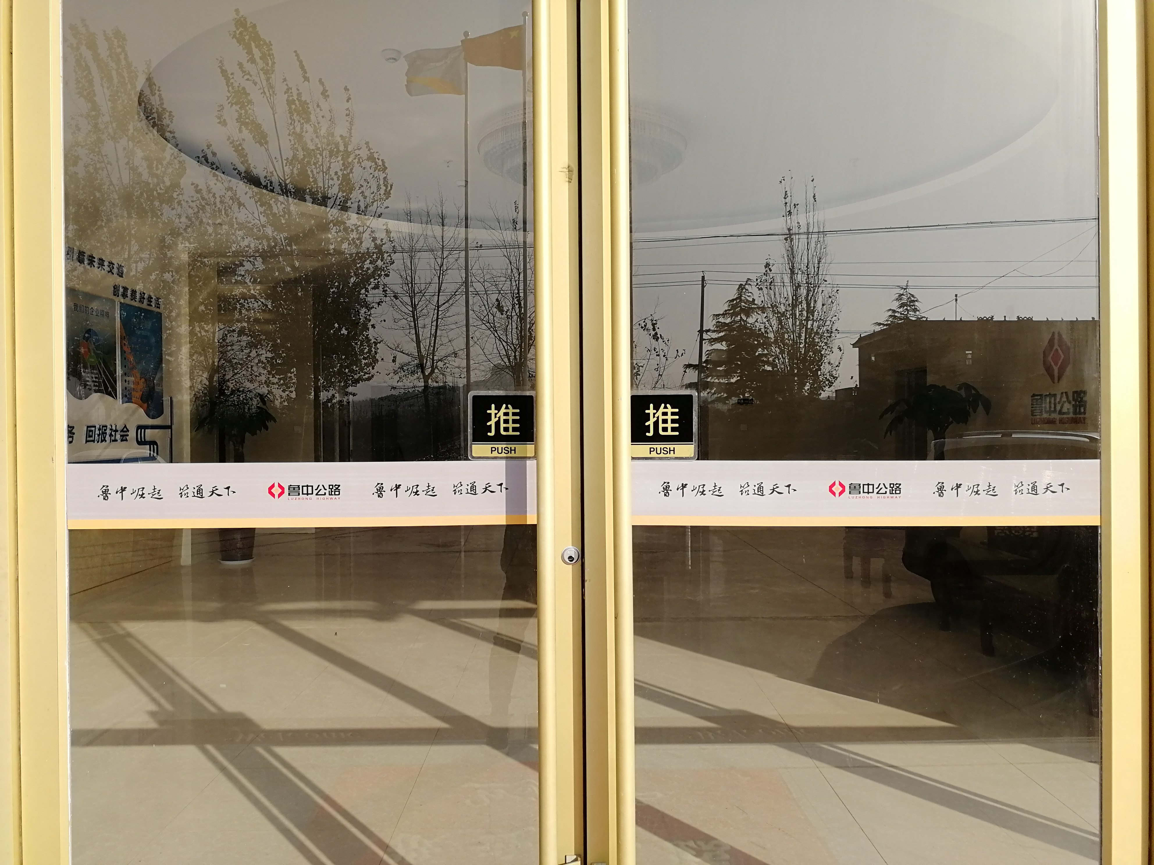 項(xiàng)目部辦公樓大門,配備了醒目的魯中公路標(biāo)識(shí)。