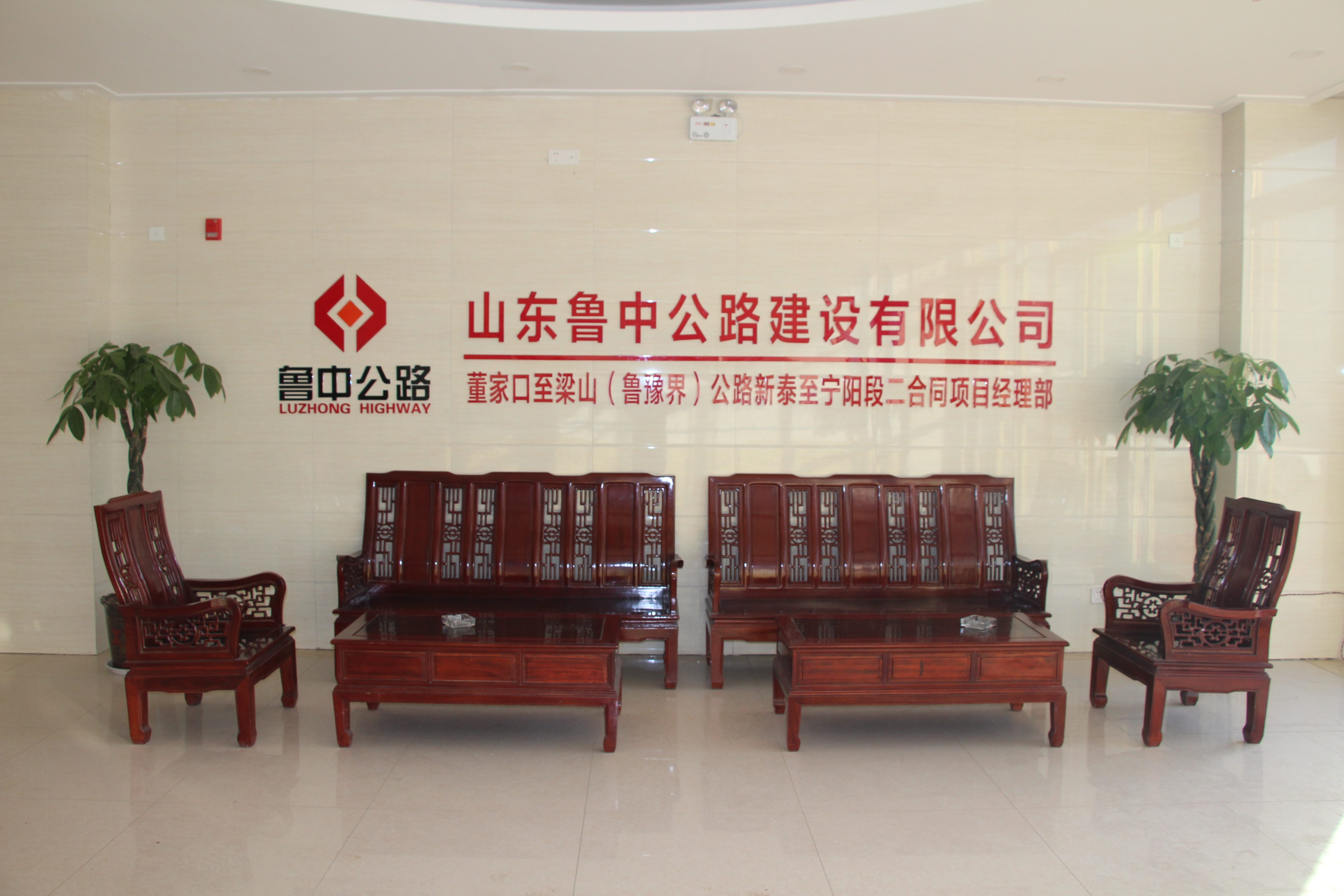 推開項(xiàng)目部大門,進(jìn)入一樓大廳內(nèi),首先映入眼簾的是魯中公路標(biāo)志及文化標(biāo)語。