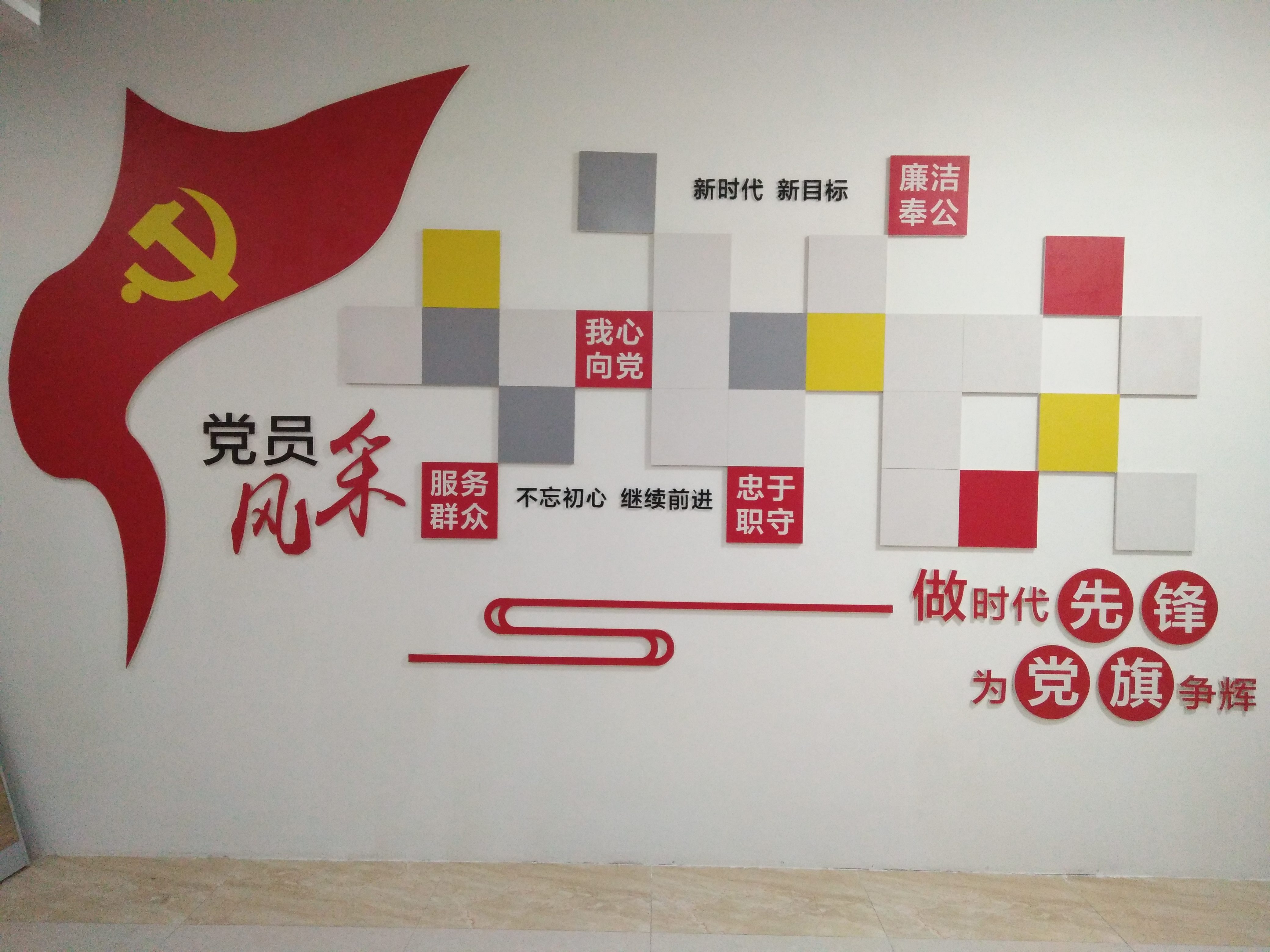 黨員活動(dòng)室內(nèi)的大幅黨建宣傳圖。