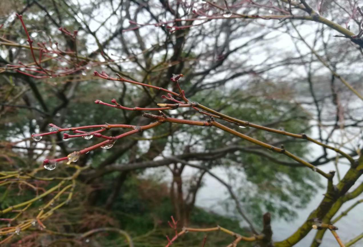 你看,在這溫暖的江南,也是會有一些花草樹木凋零,以他們自己的方式表達(dá)著對這四季輪回的尊重。雨后的枝丫總掛著一些調(diào)皮的水滴,不肯落下,沒了葉片的樹枝有著簡單的線條,再有這水珠的靈動(dòng),也讓人甚是喜歡。