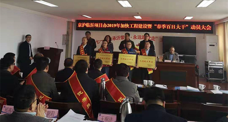 2019年2月20日,齊魯交通發(fā)展集團(tuán)在濟(jì)南召開工程建設(shè)動(dòng)員大會(huì),會(huì)上對(duì)2018年度優(yōu)秀參建單位及個(gè)人進(jìn)行了表彰,通報(bào)了2018年度勞動(dòng)競賽開展情況及年度綜合考核、檢查情況,部署了2019年高速公路建設(shè)任務(wù),并授予山東魯中公路建設(shè)有限公司“優(yōu)秀施工單位”稱號(hào);3月9日京滬高速公路萊蕪至臨沂(魯蘇界)段改擴(kuò)建工程項(xiàng)目辦在臨沂召開加快工程建設(shè)暨“春季百日大干”動(dòng)員大會(huì),會(huì)議總結(jié)了2018年取得的豐碩成績,制定了“春季百日大干”施工計(jì)劃,指出了了下一步工作重點(diǎn),并授予魯中公路“優(yōu)勝施工單位”榮譽(yù)稱號(hào)。