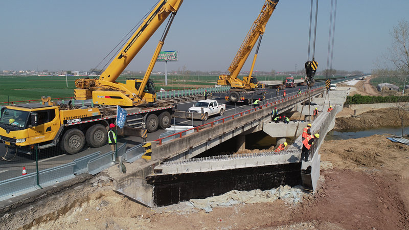 2019年4月1日,京滬高速公路萊蕪樞紐至臨沂(魯蘇界)主線(K477+442.25-K710+180)段實(shí)行交通封閉,封閉期間,改擴(kuò)建區(qū)域內(nèi)所有上跨主線橋全部拆除,我部借此有利時(shí)機(jī),抓重點(diǎn)、搶時(shí)機(jī),短時(shí)間內(nèi)借助高速封閉,在高速上直接進(jìn)行梁板安裝施工,大大節(jié)約了時(shí)間,成本,降低施工難度,隨后我部對(duì)跨河道橋梁梁板進(jìn)行了重點(diǎn)梳理,最終確定把K696+847.765柳溝河西支中橋、K697+079.838小橋梁板吊裝作為本次封閉期間重點(diǎn)工作,利用這短暫寶貴的封閉時(shí)間,我部先對(duì)現(xiàn)場(chǎng)人員按進(jìn)行了安全技術(shù)交底,然后機(jī)械設(shè)備緊鑼密鼓地趕至施工現(xiàn)場(chǎng)并迅速展開梁板安裝施工,并且經(jīng)過一天的奮戰(zhàn),終于完成了柳溝河西支中橋左幅的全部梁板安裝任務(wù)。