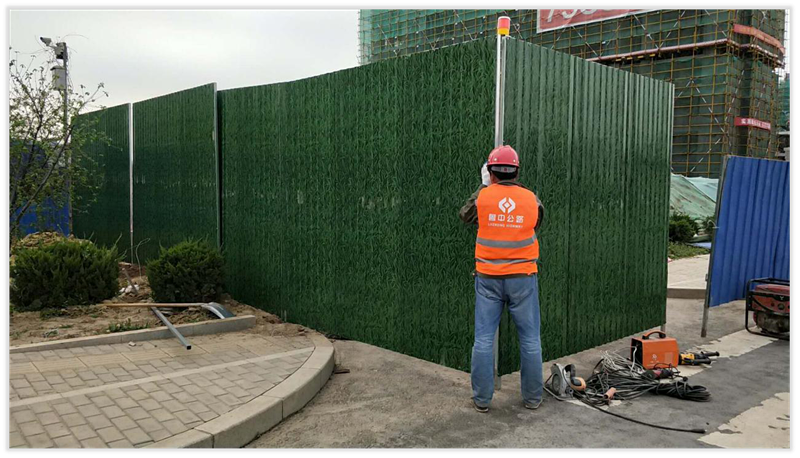 近年來(lái)山東省政府在建筑市場(chǎng)大搞生產(chǎn)安全、環(huán)境環(huán)保治理活動(dòng),淄博經(jīng)開區(qū)建設(shè)局要求在地面和空中都不能看到工地有揚(yáng)塵產(chǎn)生,建筑生產(chǎn)環(huán)境必須符合整齊、安全、環(huán)保的要求。魯中公路淄博經(jīng)開區(qū)道路工程項(xiàng)目,及時(shí)采取有效措施,既符合政府新標(biāo)準(zhǔn)又突出山東魯中公路文化建設(shè)的主線,適時(shí)更換2.75m×2.5m規(guī)格綠植畫面彩鋼圍擋,設(shè)制有山東魯中公路建設(shè)有限公司形象的臨時(shí)大門,把環(huán)保、安全、時(shí)政宣傳、公益廣告圖案等安裝到圍擋上,即節(jié)約制作與安裝成本,又美化了施工圍擋,還為魯中公路文化建設(shè)做了形象宣傳。