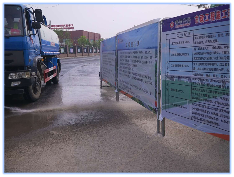 防揚(yáng)塵每天工地環(huán)保水車都會(huì)按時(shí)沖洗,保持工地形象干凈整潔