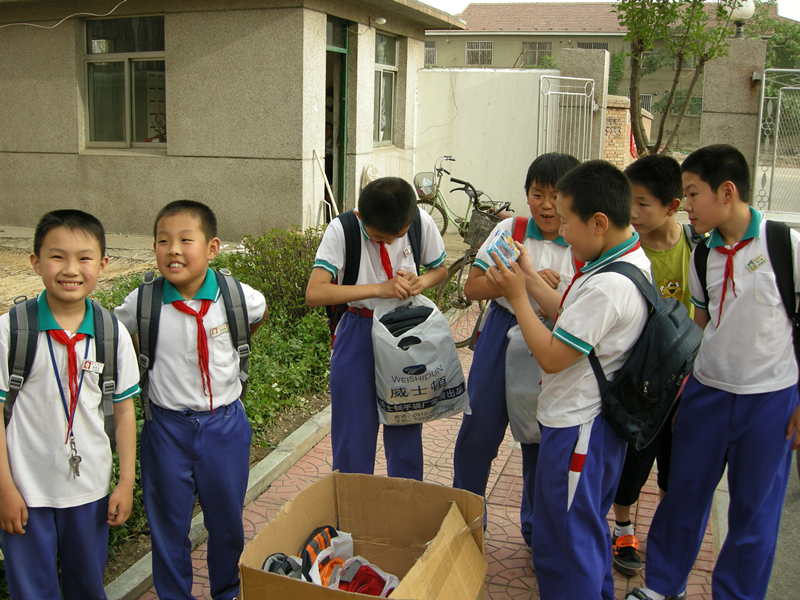 2007年六一公司工作人員在生活區(qū)為孩子發(fā)放禮物