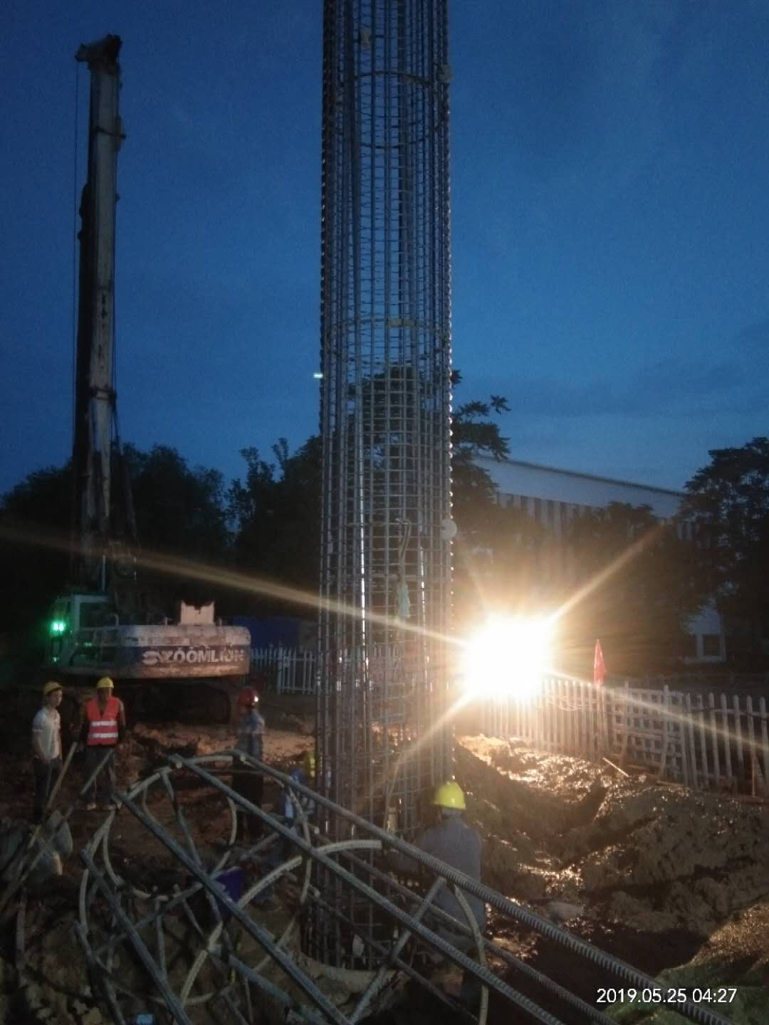剛開(kāi)工時(shí),老城區(qū)地下管線錯(cuò)綜復(fù)雜,探溝開(kāi)挖困難重重。澇淄河橋下電纜、國(guó)防、污水、雨水更是相互交錯(cuò),現(xiàn)場(chǎng)一探再探,設(shè)計(jì)變更一變?cè)僮?,歷時(shí)將近一個(gè)月。因工程在城區(qū)中心,東二路交通難以封閉,項(xiàng)目部多次與監(jiān)理、業(yè)主以及交警溝通封閉交通方案,考慮了種種因素未能成功實(shí)施。在這種情況下,由于工期緊、任務(wù)重,運(yùn)輸車只能夜晚裝車外運(yùn),澇淄河橋只能夜深人靜,車流量、人流量稀少的時(shí)候進(jìn)行樁基施工,現(xiàn)場(chǎng)人員連續(xù)一個(gè)多月夜晚加班至凌晨。