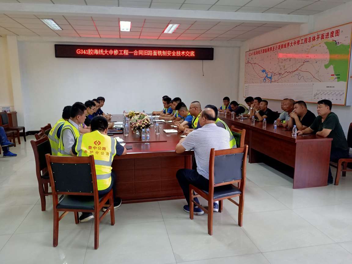 2019年6月29日上午,G341膠海線沂源臨朐界至沂源鋼城界段大中修工程開工之際,G341膠海線沂源臨朐界至沂源鋼城界段大中修工程一合同項(xiàng)目召開由總監(jiān)辦相關(guān)負(fù)責(zé)人、勞務(wù)隊(duì)伍負(fù)責(zé)人、項(xiàng)目部全體人員參加的路面銑刨安全、技術(shù)交底會(huì)議。