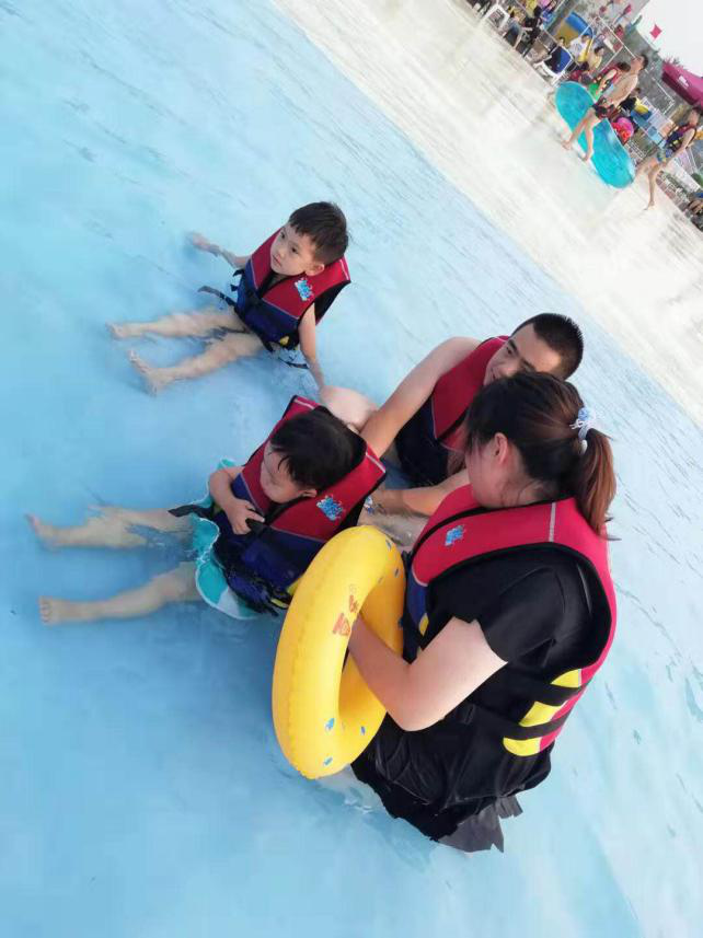 下午的活動安排是前往桓臺紅蓮湖水上樂園玩耍,孩子們到了水上樂園那可真的是撒了歡了,看到哪個項目都想要玩耍,水上小滑梯一趟接著一趟的玩兒,大一點的孩子們都等著“大海浪”來刺激一把,還有的孩子們在爸爸面前展示自己剛剛學會的游泳,孩子們和大人們臉上都掛著幸福的笑容。晚上聚餐的時候,有位媽媽說以前總以為孩子爸爸在工地上吃苦受累,心中滿是牽掛,今天親臨一線,看到標準化的工地建設(shè),看到這么融洽和協(xié)的團隊氛圍,心中踏實了,會毫無顧慮的支持孩子爸爸的工作了。