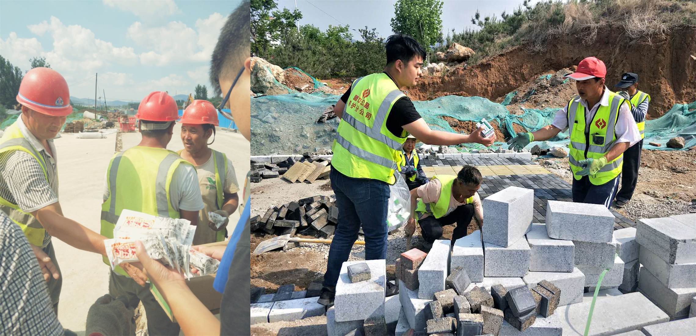 沂源縣人民路是2017年市重大項目,沂源縣重點工程,起點為魚臺大橋,終點為振興東路,全長8.64公里,工期截止到7月底,時間緊、任務重,人民路全體職工合理安排工期、人員、加班加點進行施工,晚上延時到22點,早上不到7點就必須趕赴施工現(xiàn)場。實在熱得受不了了,小伙子們就喝上瓶藿香正氣水,休息片刻,繼續(xù)堅持工作。