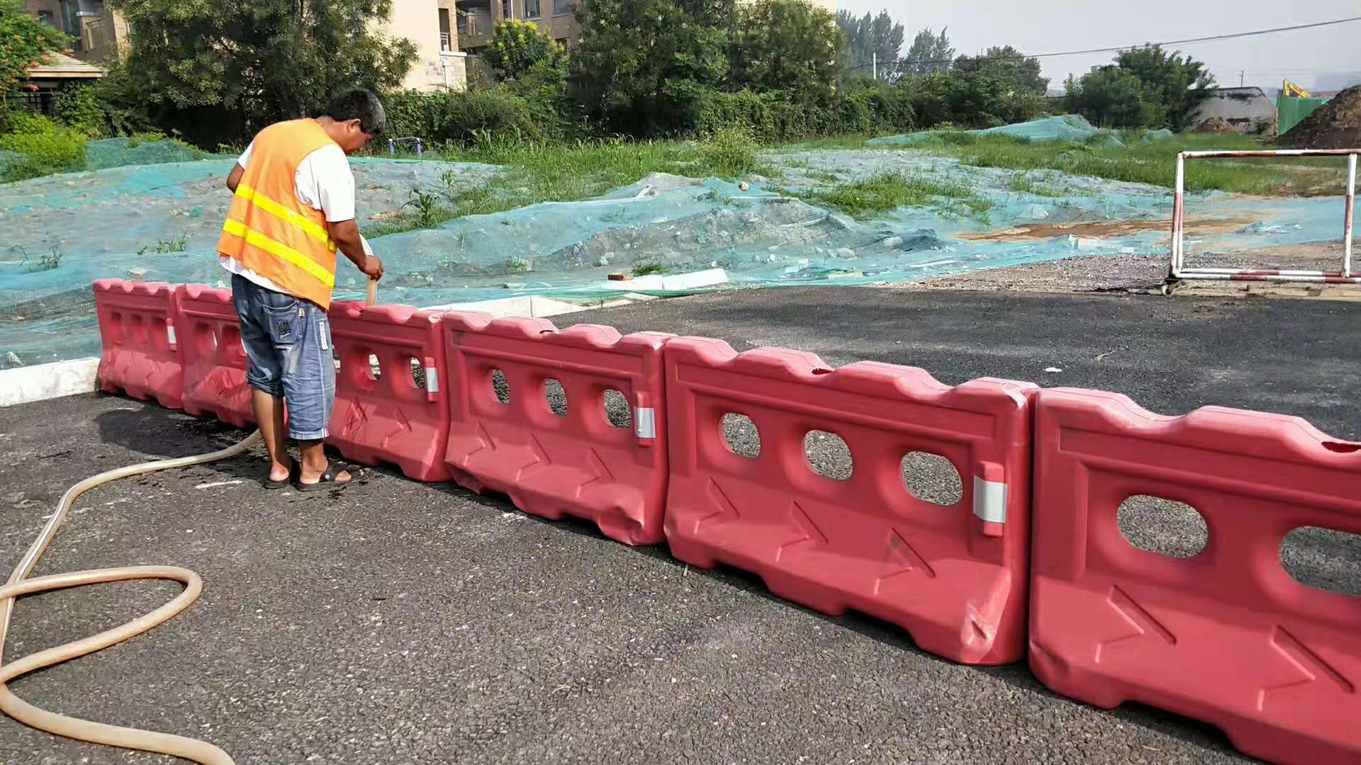 對水馬、防撞筒進行注水補水加重
