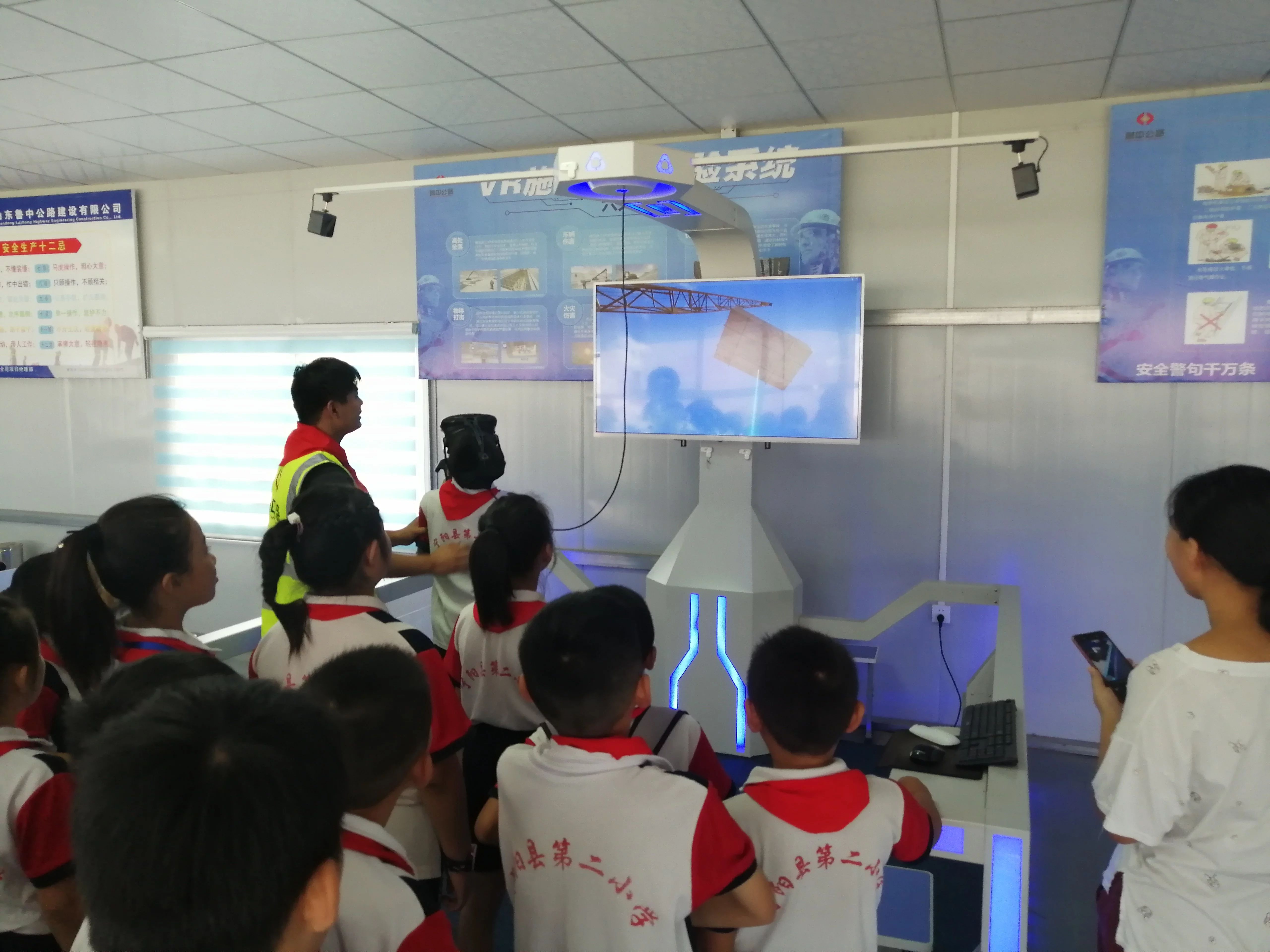 安全是工程建設的重中之重,少先隊員們特地參觀了“VR安全體驗館”。體驗館中以三維動態(tài)的形式全真模擬出工地施工真實場景和險情,使孩子們通過身臨其境的體驗,切實體驗到了事故發(fā)生時的整個過程及發(fā)生瞬間的驚險,為孩子們上了一堂生動安全課。