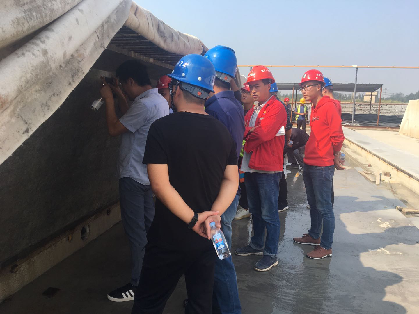 專家一行通過一系列的實地檢查、詢問,總結出箱梁制作方面存在的問題,并對下一步問題整改提出了意見和建議。