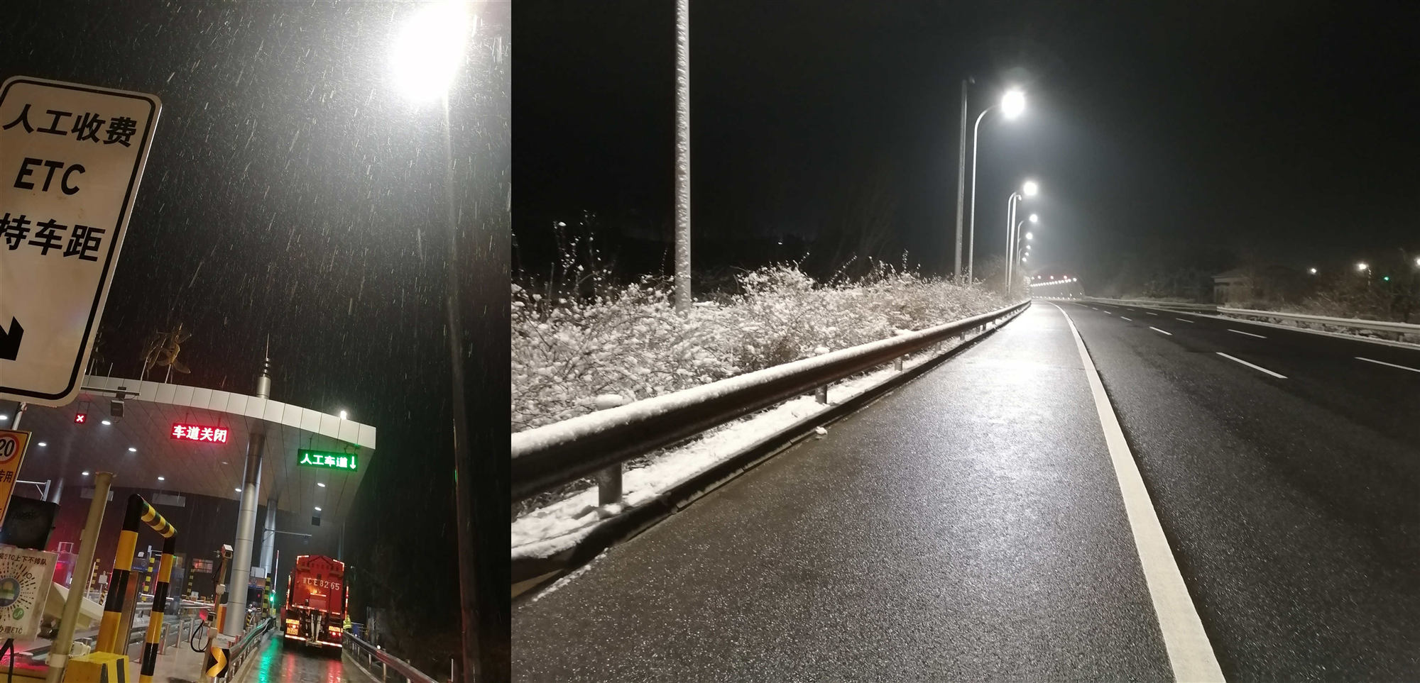當(dāng)晚21時天空中開始飄起了雪花,21:15時分別在張家坡收費站和魯村收費站的跟車員黃衍剛、陳仁明接到命令開始按原定計劃撒布融雪劑。23:30分,各自路段融雪劑撒布完成。26日5:50,根據(jù)通知要求,以橋面為主繼續(xù)撒布融雪劑,并擺放安全錐配合高速交警疏導(dǎo)、分流過往車輛。