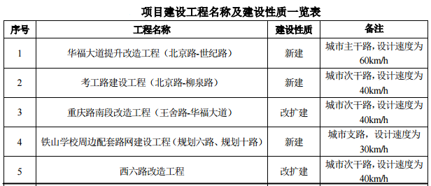 基礎(chǔ)設(shè)施工程共包含5條涉及道路項目