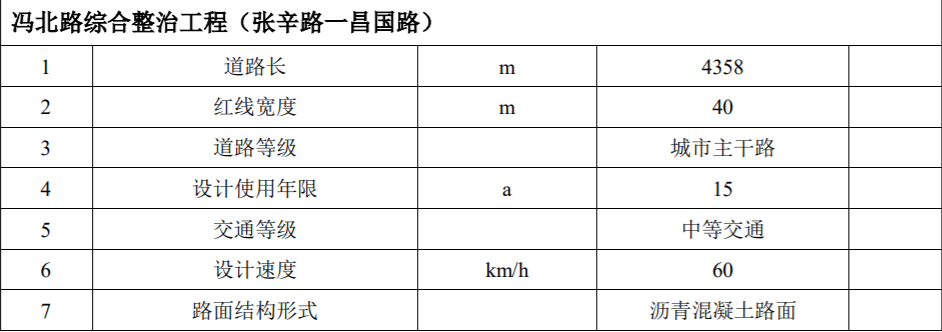 馮北路綜合整治工程(張辛路一昌國路)本項目在現(xiàn)有馮北路基礎(chǔ)上進(jìn)行提升改造,總占地面積299畝,其中新征地面積約124畝,擬租賃土地175畝。