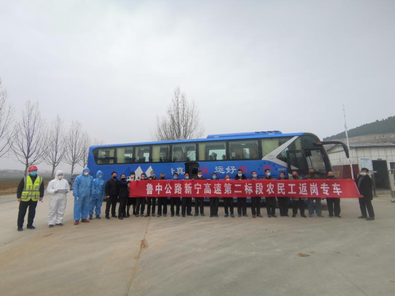 2月26日上午7時30分,兩輛乘載復工返崗農民工的“直通車”從泰安市交運集團有限公司出發(fā),分別赴淄博市沂源縣中莊鎮(zhèn)和棗莊市山亭區(qū)店子鎮(zhèn),將來自兩個鄉(xiāng)鎮(zhèn)的三十名農民工安全接返工作崗位。在接返前,新寧二標負責人積極與工人所在地政府充分對接、溝通,確保每個返崗農民工和駕駛人員已居家隔離觀察14天并且身體健康。上車前,為工人們進行了體溫測量,并為他們準備了個人防護用品,途中嚴格做到“三不接觸”,即:工人與工人不近距離接觸,工人與工作人員不近距離接觸,工作人員與外地人員不近距離接觸,同時,“直通車”出發(fā)后不再停站,真正實現(xiàn)點對點、閉合鏈對接。