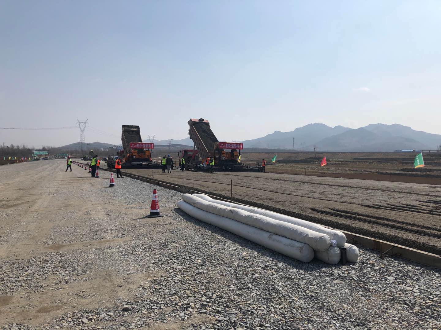 2020年3月9日,路基試驗段交驗。3月10日,路面基層開工,比年初制定的計劃整整提前了五天。