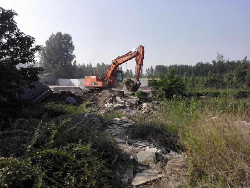 今年五月份,再次來到孝婦河畔,呈現(xiàn)在眼前的景象卻令人始料未及——由于規(guī)劃建設濕地公園,該段孝婦河東岸的房屋盡數(shù)拆遷,到處都是殘垣斷壁,像地震后的一片廢墟。而我們項目部選址恰恰就在這個位置。