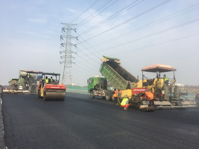 頂住各方壓力,瀝青施工穩(wěn)步推進。3月22日,主線橋瀝青開始施工,距離通車計劃又近一步。3月24日,順利完成瀝青上面層施工為下一步工序伸縮縫的施工贏得了時間。