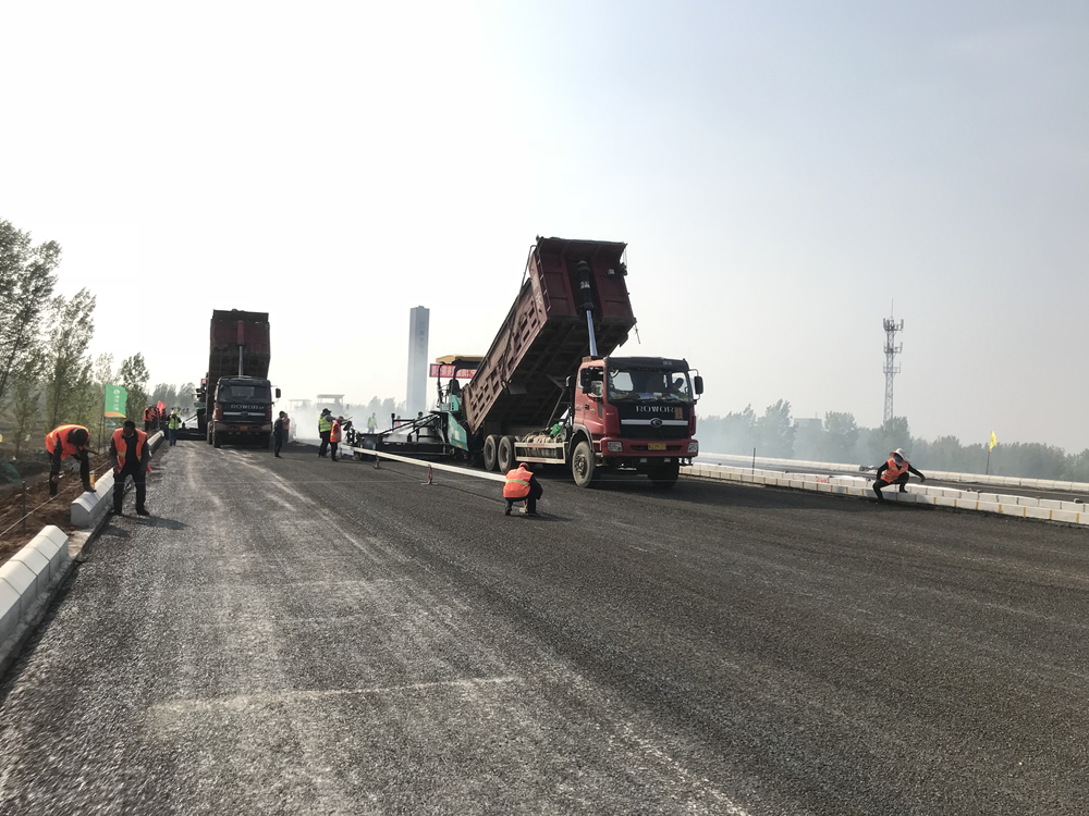 青蘭項(xiàng)目部瀝青路面首件攤鋪