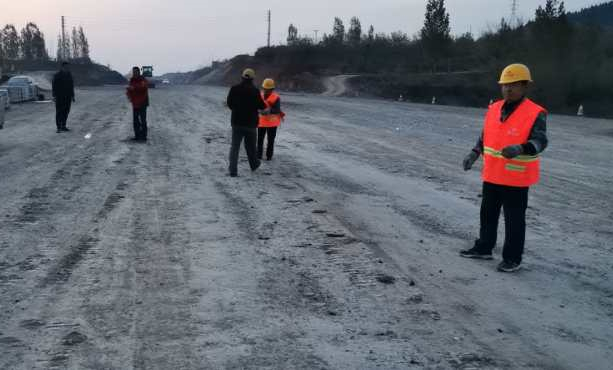 各生產(chǎn)分部在確保施工生產(chǎn)和運輸車輛正常行駛的同時,主動放棄休息時間,加班加點,積極調(diào)配各類作業(yè)機械和人員,連續(xù)工作30多個小時,使施工便道以最快的時間達到了通車條件,各種指示、標(biāo)牌也在第一時間布置到位。調(diào)研匯報地點處,屬于路面分部施工段落。為確保匯報場地不出任何紕漏,路面負(fù)責(zé)人親自督導(dǎo)作業(yè),并安排專人值守,發(fā)現(xiàn)問題第一時間解決處理,確保了現(xiàn)場萬無一失。