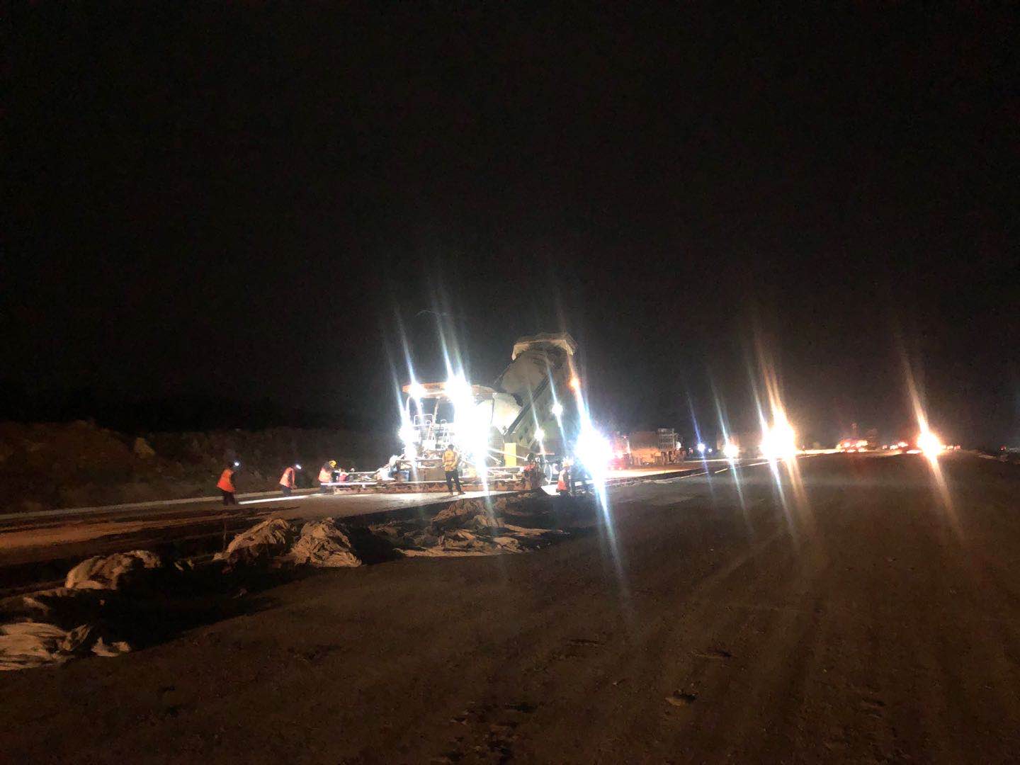 五一勞動節(jié),勞動最光榮。但光榮的勞動并不會一帆風順,原計劃早點干完回駐地享受一頓豐盛的晚餐,因為種種原因?qū)е率┕みM度并不順利。開弓沒有回頭箭,計劃好的任務(wù)絕不能推遲,加班加點也要將計劃完成。 5月2日凌晨12點半,拌合站停機出料完成,凌晨1點半,現(xiàn)場水穩(wěn)攤鋪結(jié)束。20個小時的奮戰(zhàn)讓這個別樣的五一勞動節(jié)熠熠生輝。