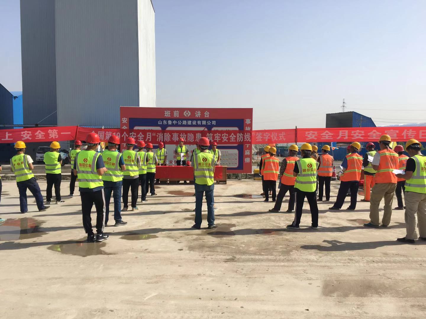 2020年6月是全國第19個“安全生產(chǎn)月”,主題為“消除事故隱患,筑牢安全防線”。為了充分發(fā)揚此次“安全生產(chǎn)月”精神,達(dá)到寓教于樂,提高全體員工安全意識,增強安全技能,6月3日上午8點整,青蘭高速路面分部與青蘭項目部在瀝青拌合站聯(lián)合開展全國第19個“安全生產(chǎn)月”啟動儀式。