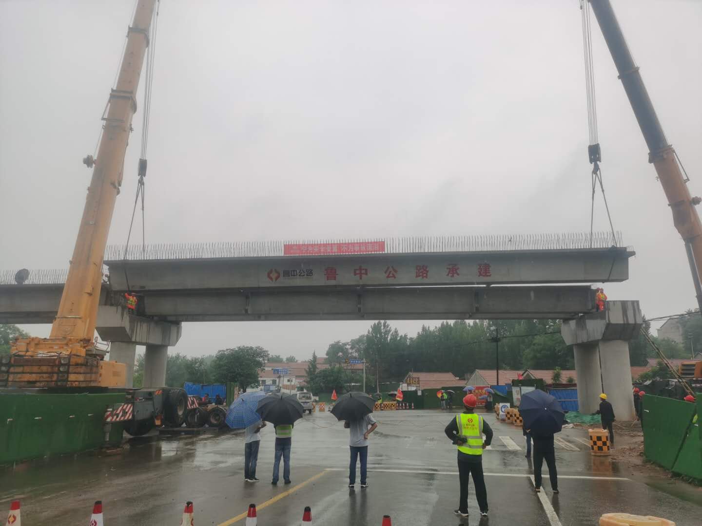 G341膠海線(xiàn)南崔路立交橋完成跨南崔路箱梁吊裝