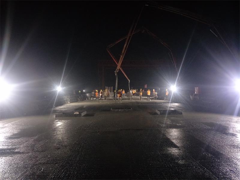現(xiàn)場管理人員、技術(shù)人員和試驗人員全過程跟蹤作業(yè),經(jīng)過將近9小時的緊張奮戰(zhàn),順利完成了K 59+088.719興隆莊特大橋右幅第1、2孔的支架現(xiàn)澆箱梁底腹板混凝土澆筑。本次現(xiàn)澆箱梁順利完成澆筑標志著興隆莊特大橋現(xiàn)澆箱梁進入了關(guān)鍵性階段,為下一階段的砼澆筑奠定了堅實基礎(chǔ)。