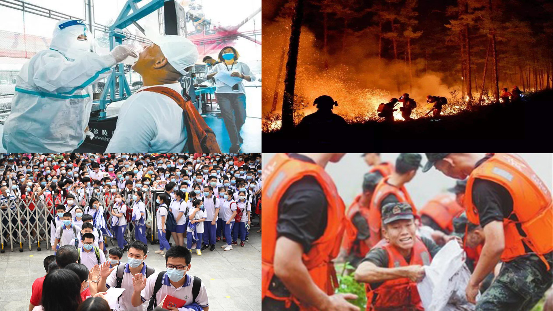 從年初的新冠疫情,再到?jīng)錾綗鸬哪菆錾交?,從延期舉行的高考,再到如今影響我國多個省區(qū)市的汛情每一個事件都是那么的極不平凡。但2020年又必定是一個讓人銘記的一年,面對疫情在黨中央的領(lǐng)導(dǎo)下,做到了防控措施落實到戶、到人,群防群控,穩(wěn)防穩(wěn)控,在一連串的正確措施下,國內(nèi)的疫情終于得以控制,人民的生產(chǎn)生活得以恢復(fù)正常;面對涼山熊熊燃燒的大火,無數(shù)的各有關(guān)部門工作人員、消防戰(zhàn)士以及民間組織的打火隊奮不顧身的投入到滅火行動中,他們中有的人生命最終停留在了火場之中,但是正是他們付出才得以將大火阻擋在了西昌市之外;7月7日受到疫情而延期的2020年高考得以矩形,全國1071萬考生參加了這場從各個角度來說都意義非凡的考試,考場內(nèi)是奮筆疾書將三年來的努力學(xué)習(xí)開花結(jié)果的莘莘學(xué)子們,而場外是翹首以盼的家長和為了保障考試正常進行默默奉獻(xiàn)自己力量的警察、交警和志愿者們,他們雖然不能幫助考生獲得高分,但是他們也用自己能做的事情來為高考的順利進行奉獻(xiàn)力量;如今南方的汛情隨著南方逐漸增加的降水,截止7月13日全國已有433條河流發(fā)生超警洪水,我國即將進入防汛的關(guān)鍵時期,但是我們也堅信在黨和國家的領(lǐng)導(dǎo),在基層干部夜以繼日的排查險情,在武警官兵、人民子弟兵以及消防戰(zhàn)士時刻準(zhǔn)備投入險情第一線的當(dāng)下,我們一定可以將這次汛期圓滿的度過。