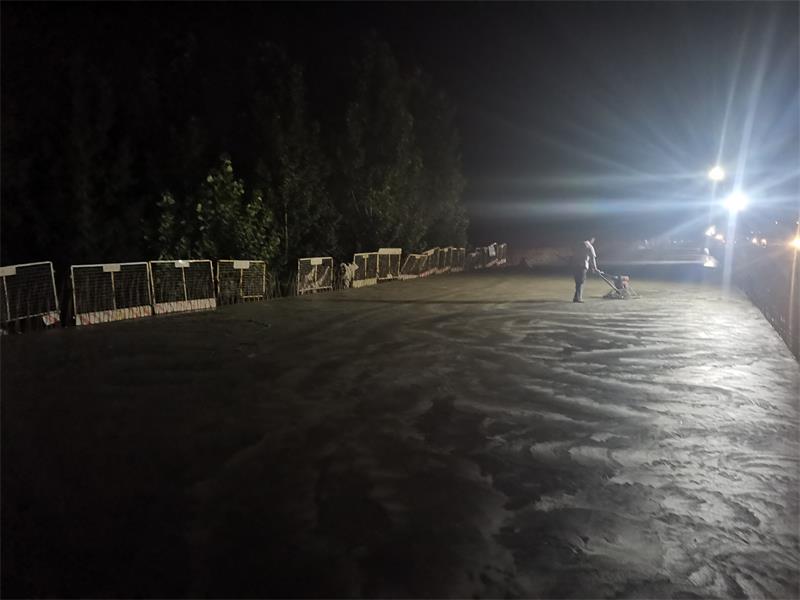 在橋面鋪裝施工過程中,新寧項目部精心組織、超前謀劃,從原材料的選用到鋪裝前橋面面板清理、鋼筋網(wǎng)片鋪設(shè)、混凝土澆筑平整等,每道工序嚴(yán)格把關(guān),相關(guān)技術(shù)人員全程指導(dǎo)、監(jiān)督、監(jiān)測,對混凝土塌落度及橋面鋪裝層高程、厚度、橫坡度、平整度等各項技術(shù)指標(biāo)進行了嚴(yán)格控制,從而保證橋面鋪裝質(zhì)量達到優(yōu)良標(biāo)準(zhǔn)。