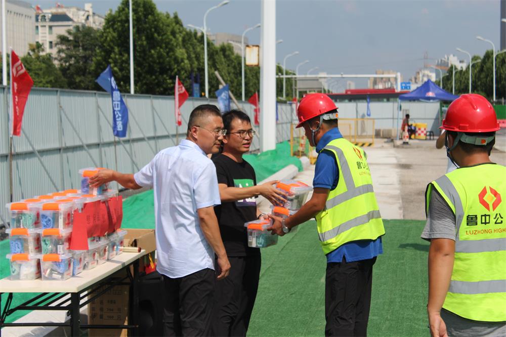 連日來(lái),持續(xù)高溫酷暑天氣,在聯(lián)通路工地上感覺(jué)是上烤下烙,魯中公路一線職工不懼酷暑依然堅(jiān)守崗位,為淄博市政建設(shè)和交通提升改造默默付出辛勞與汗水。魯中公司總經(jīng)理王克輝、第三工程公司經(jīng)理徐良軍、李剛也在施工現(xiàn)場(chǎng)關(guān)注著施工進(jìn)度與生產(chǎn)安全,特別關(guān)心著高溫下施工人員的健康問(wèn)題。除了做好進(jìn)場(chǎng)人員的體溫監(jiān)測(cè)登記,在現(xiàn)場(chǎng)臨時(shí)休息亭準(zhǔn)備了各種防暑降溫的藥物、飲料、小扇子等。看到工程一線各施工單位不辭辛勞為工程建設(shè)無(wú)私奉獻(xiàn),市城建重點(diǎn)工程指揮部市政處史清峰處長(zhǎng)、市政處科長(zhǎng)王鵬、辦公室主任秦靜一行攜帶慰問(wèn)品來(lái)到工地給大家“送清涼”來(lái)了。要求各項(xiàng)目建設(shè)單位,保證安全生產(chǎn),又要注意身體健康,要把服務(wù)和保障職工健康作為工作重點(diǎn),進(jìn)一步推動(dòng)落實(shí)關(guān)懷職工政策,幫助職工安全度夏、清涼度夏。