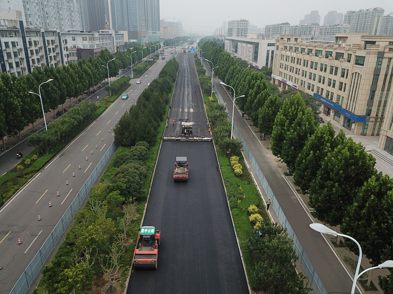 7月25日,北側(cè)機(jī)動車道瀝青下面層鋪設(shè)完成。