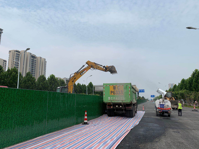 采用標(biāo)準(zhǔn)化800目防塵網(wǎng)對施工過程中垃圾進(jìn)行覆蓋,避免產(chǎn)生揚(yáng)塵