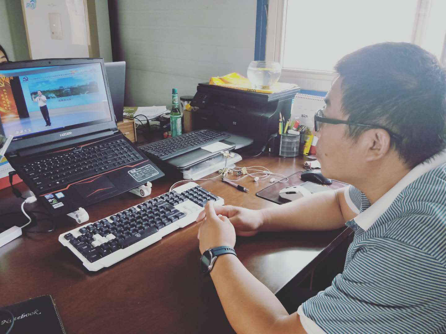 第三工程公司黨支部八月工程大干期間,因成員分散在各施工項(xiàng)目,8月10日抓住時(shí)機(jī)利用網(wǎng)絡(luò)視頻學(xué)習(xí)微黨課搞起主題黨日活動(dòng),支部全體黨員接到通知后同步使用手機(jī)和筆記本電腦,觀摩學(xué)習(xí)淄博電視臺(tái)新聞?lì)l道淄博黨建微黨課決賽,學(xué)習(xí)防疫抗疫一線先進(jìn)使勁。