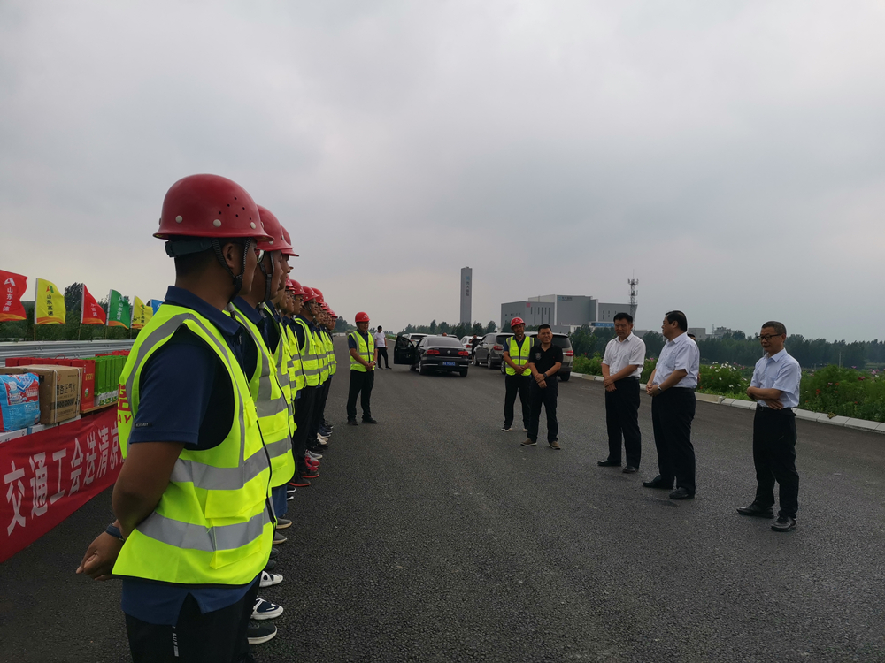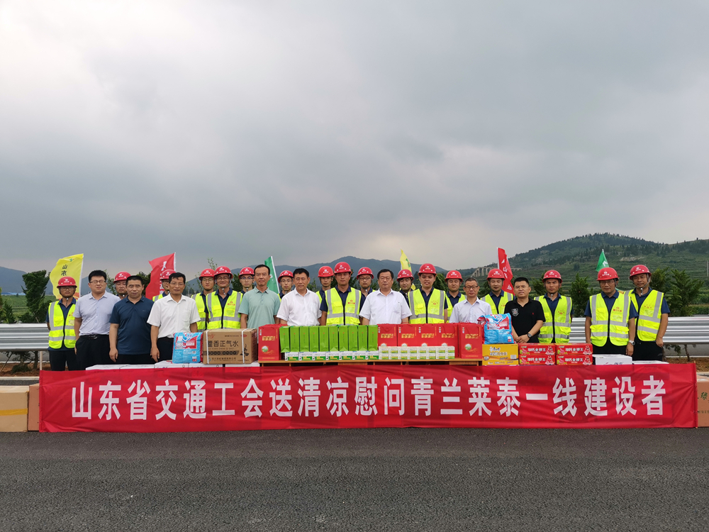 2020年8月13日,省交通廳工會副主席王迎軍,山東高速集團(tuán)公司工會常務(wù)副主席孫法合一行到青蘭項(xiàng)目部進(jìn)行調(diào)研并慰問現(xiàn)場一線員工。青蘭項(xiàng)目部負(fù)責(zé)人陪同調(diào)研和慰問活動。