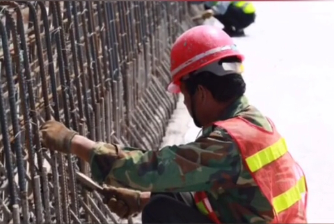 南崔路分離式立交橋的施工現(xiàn)場(chǎng),有這樣一群非??蓯?ài)的人。他們頭戴安全帽,身穿反光衣,手中還戴著一幅橡膠手套。為了不影響工程進(jìn)展,即使在溫度高的天氣下,他們依舊要穿著“標(biāo)配”,在工地進(jìn)行施工任務(wù)。在烈陽(yáng)下,他們的衣服是濕了干,干了濕,被汗水反復(fù)浸透,留下了密密麻麻的白色汗?jié)n。由于工作時(shí)穿的多,溫度高,為了避免中暑,項(xiàng)目部也會(huì)送來(lái)藿香正氣水、西瓜、雪糕等防暑降溫用品。