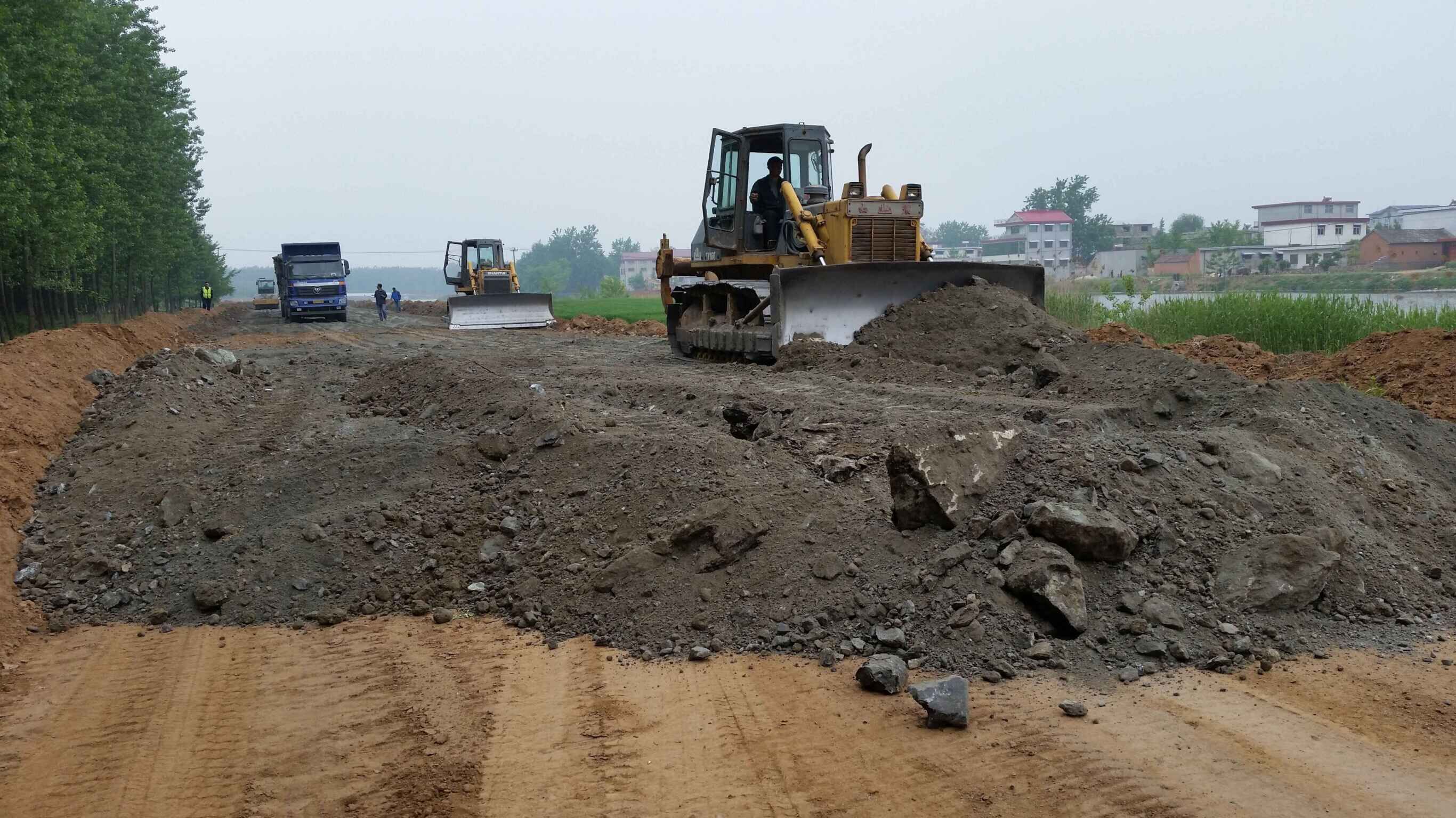 郯城縣白馬河左右堤(小馬頭橋~捷莊閘)路面建設(shè)工程,全長(zhǎng)34km。自2016年4月12日開工以來(lái),在郯城縣政府、郯城縣交通局、監(jiān)理單位以及公司領(lǐng)導(dǎo)的大力支持下,工程順利開展,各項(xiàng)工作有條不紊的進(jìn)行。截止2015年7月25日,工程任務(wù)中路基挖除、換填、水泥穩(wěn)定碎石基層、瀝青砼下面層工作已全部完成。另外,瀝青砼上面層和路緣石也已完成絕大部分。